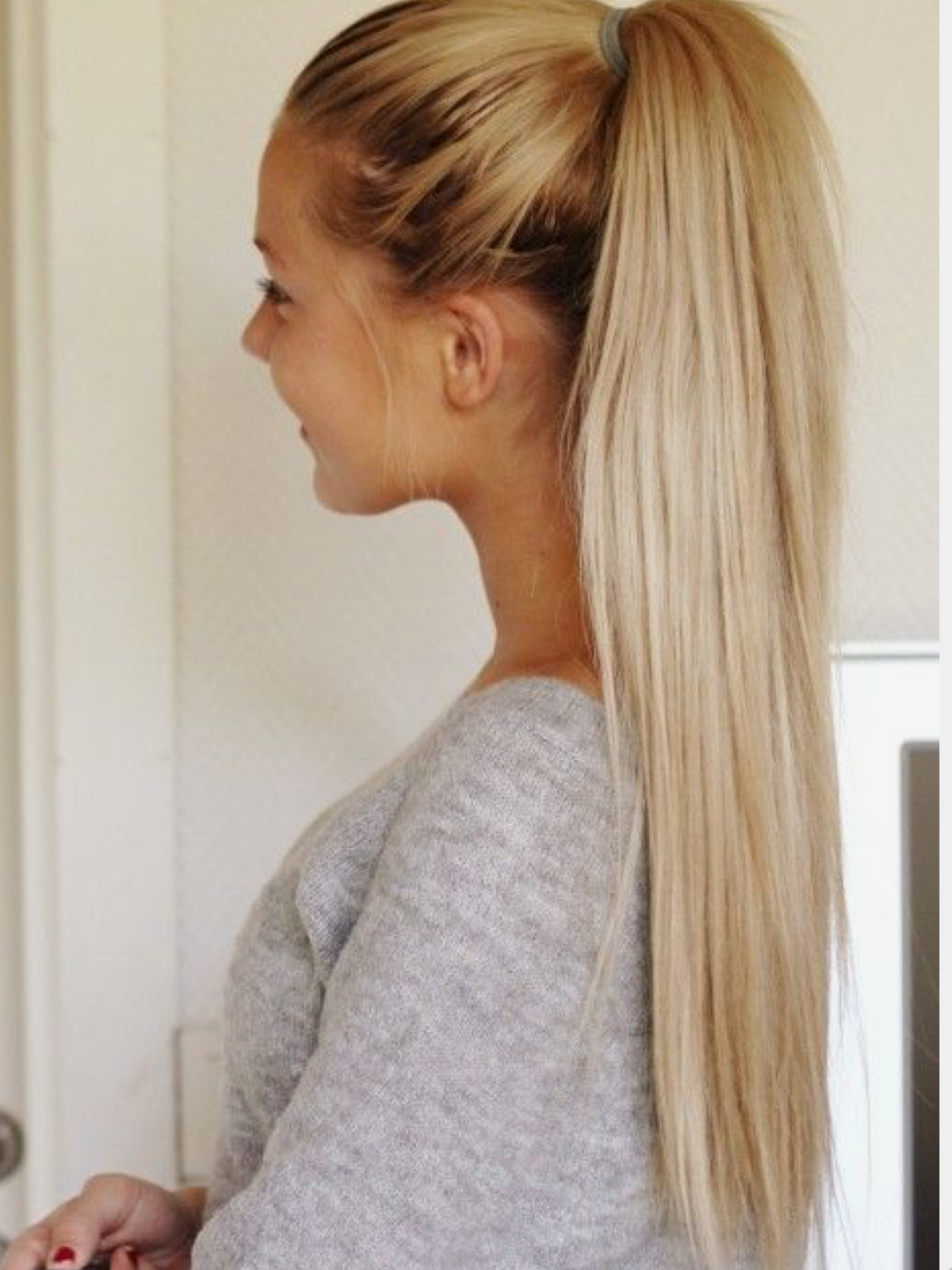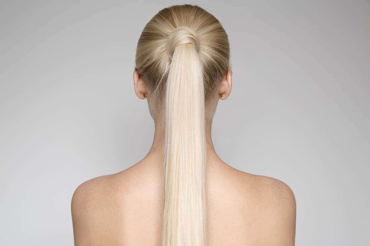 Длинные светлые волосы в хвосте