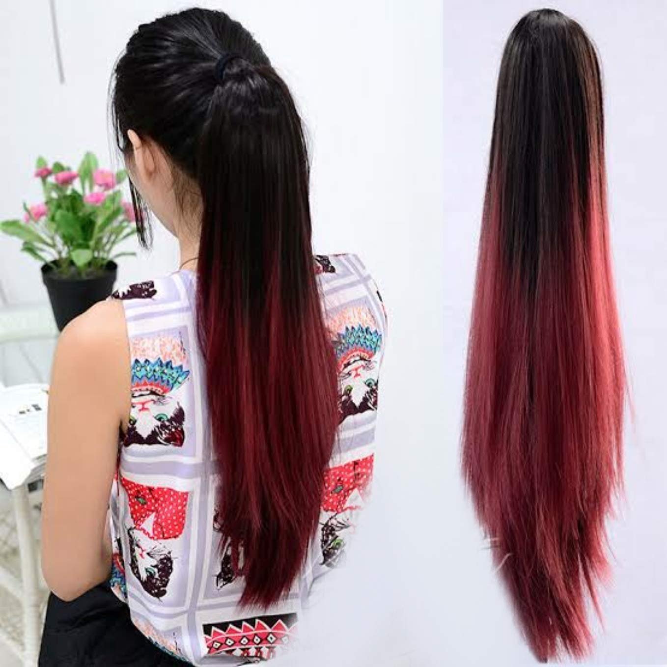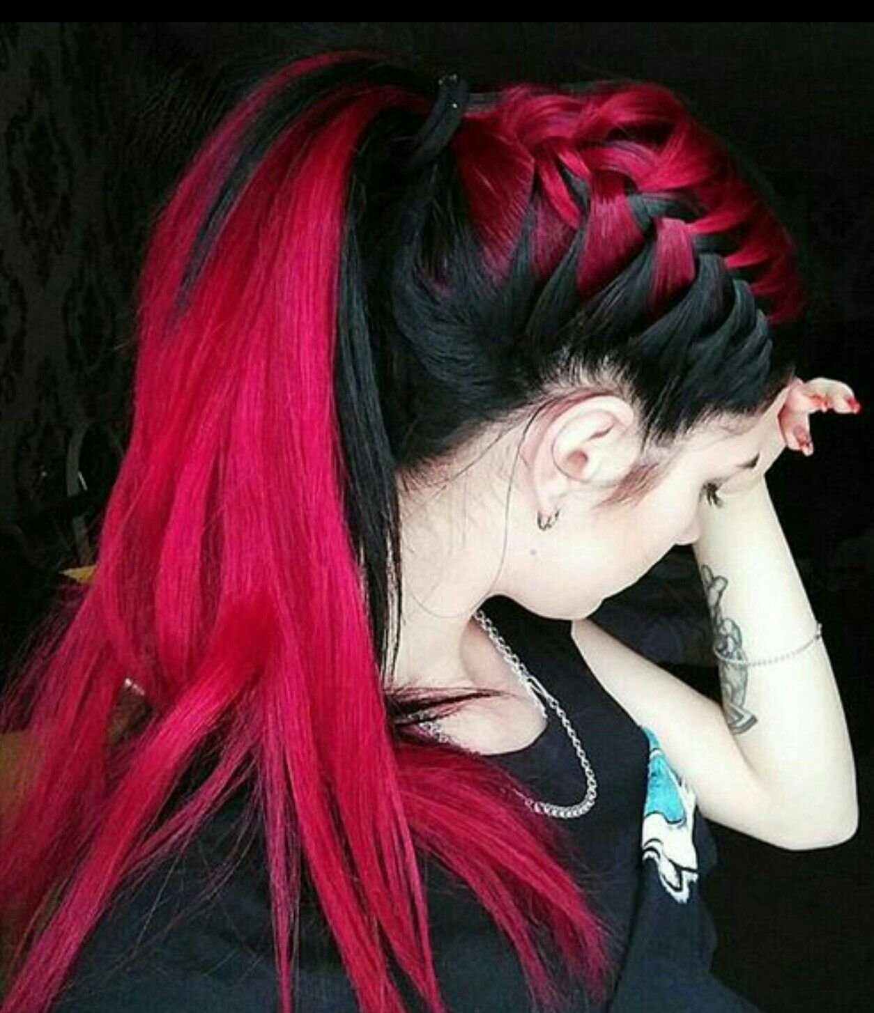 Верх чёрный низ красный волос