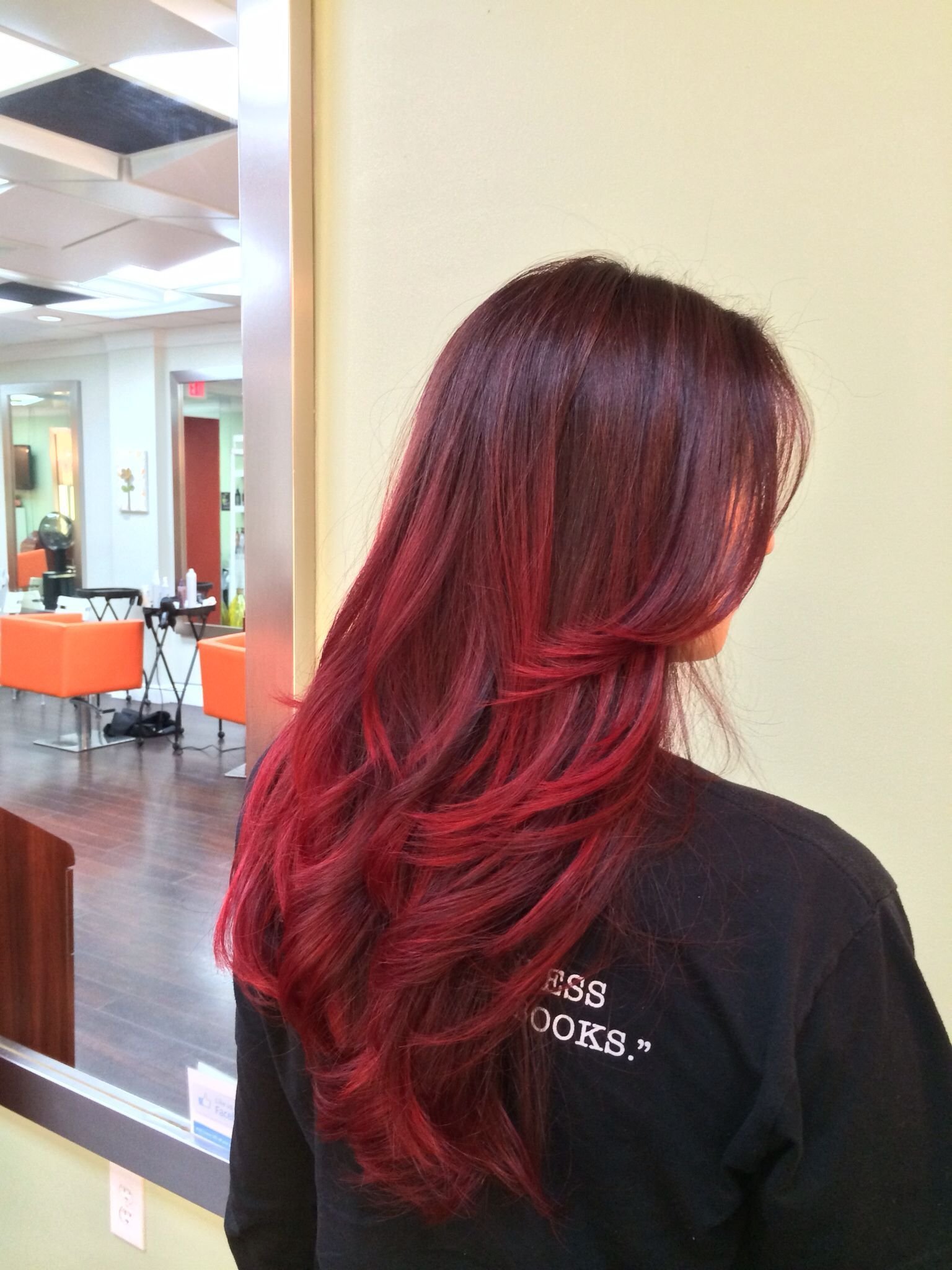 Колорирование волос красный с черным Каскад