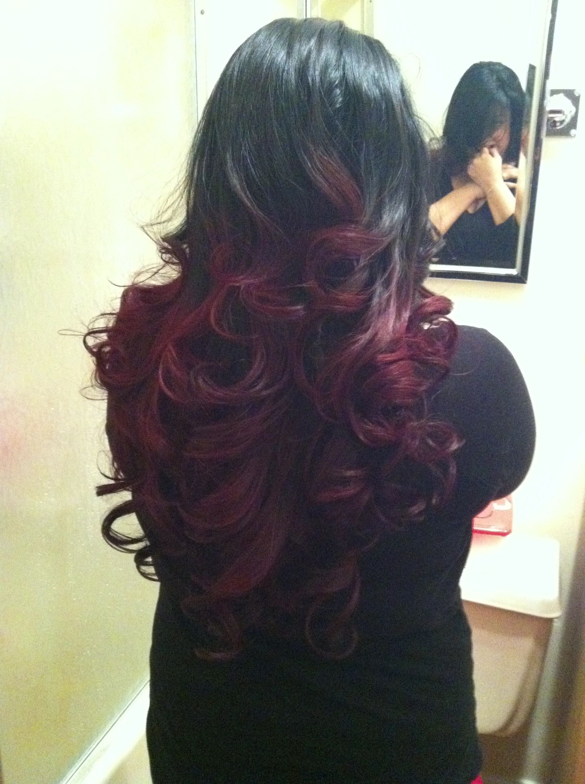 Омбре бордо на темные волосы