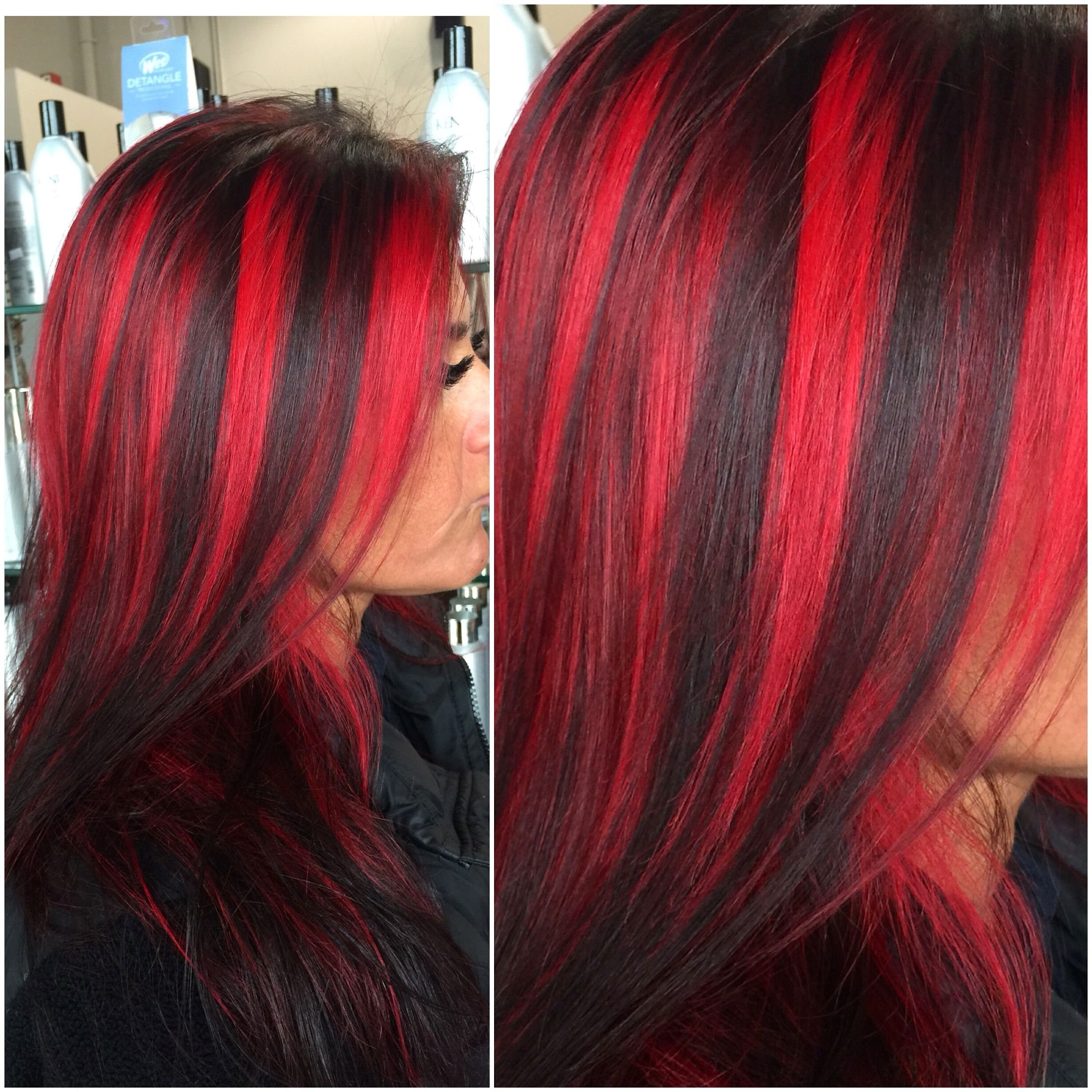 Покраска волос верх черный низ красный