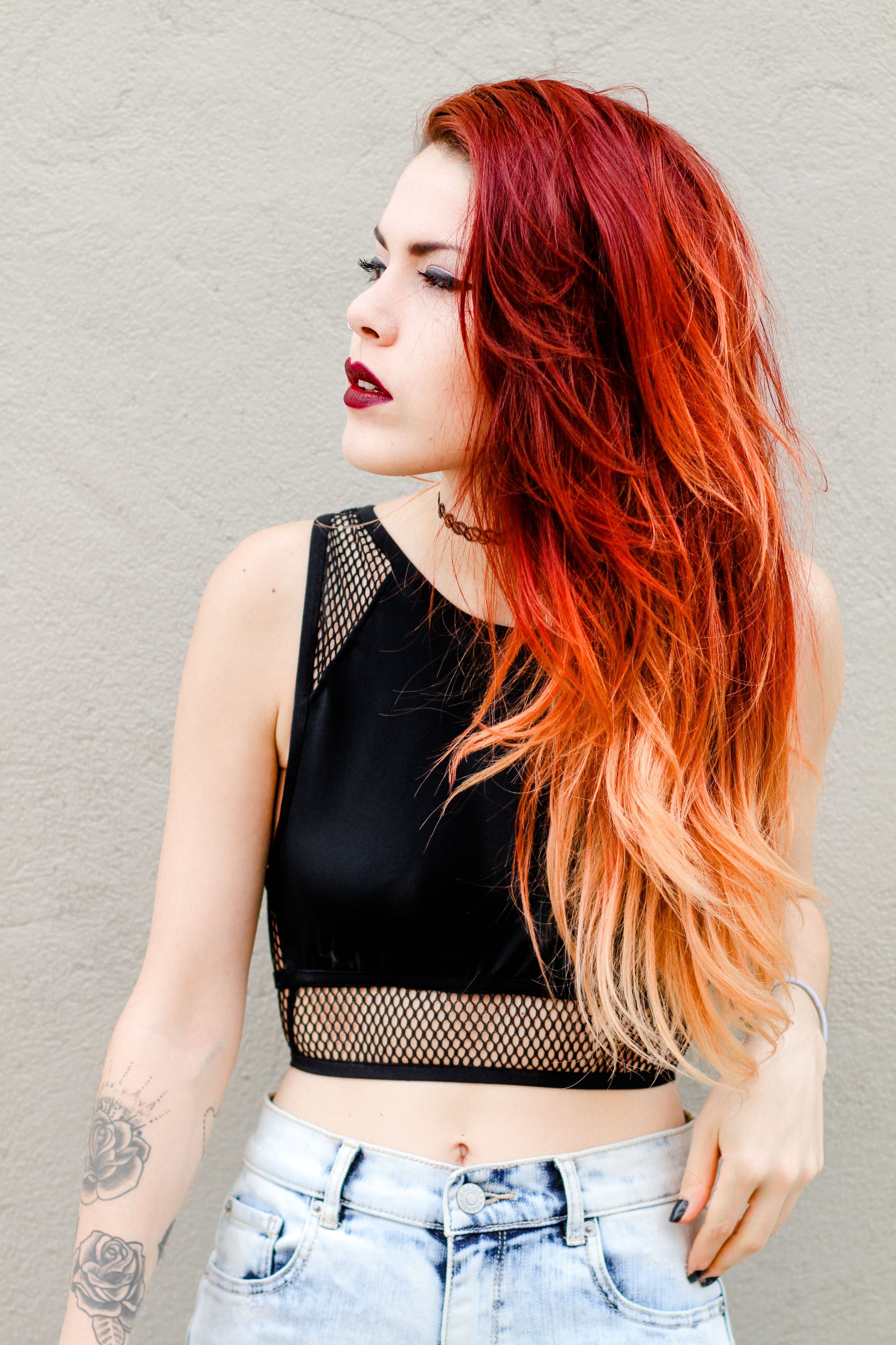 Рыжие волосы с красными прядями