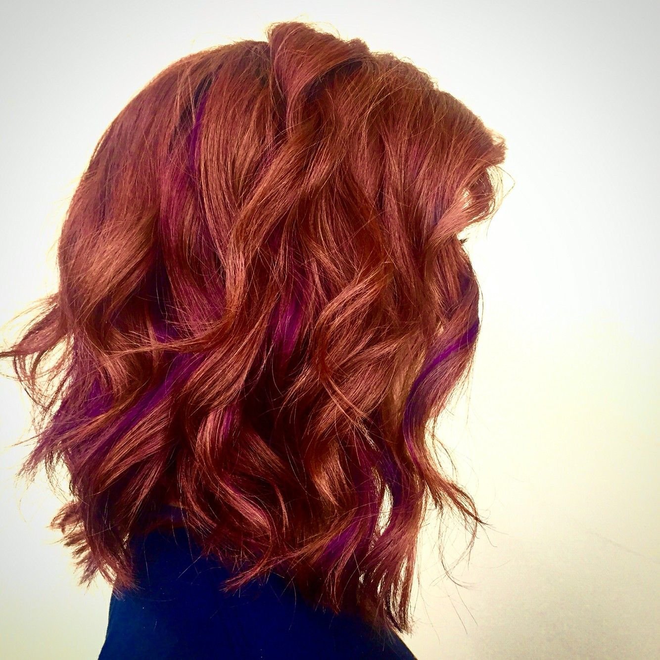 Рыжие волосы с фиолетовыми прядями