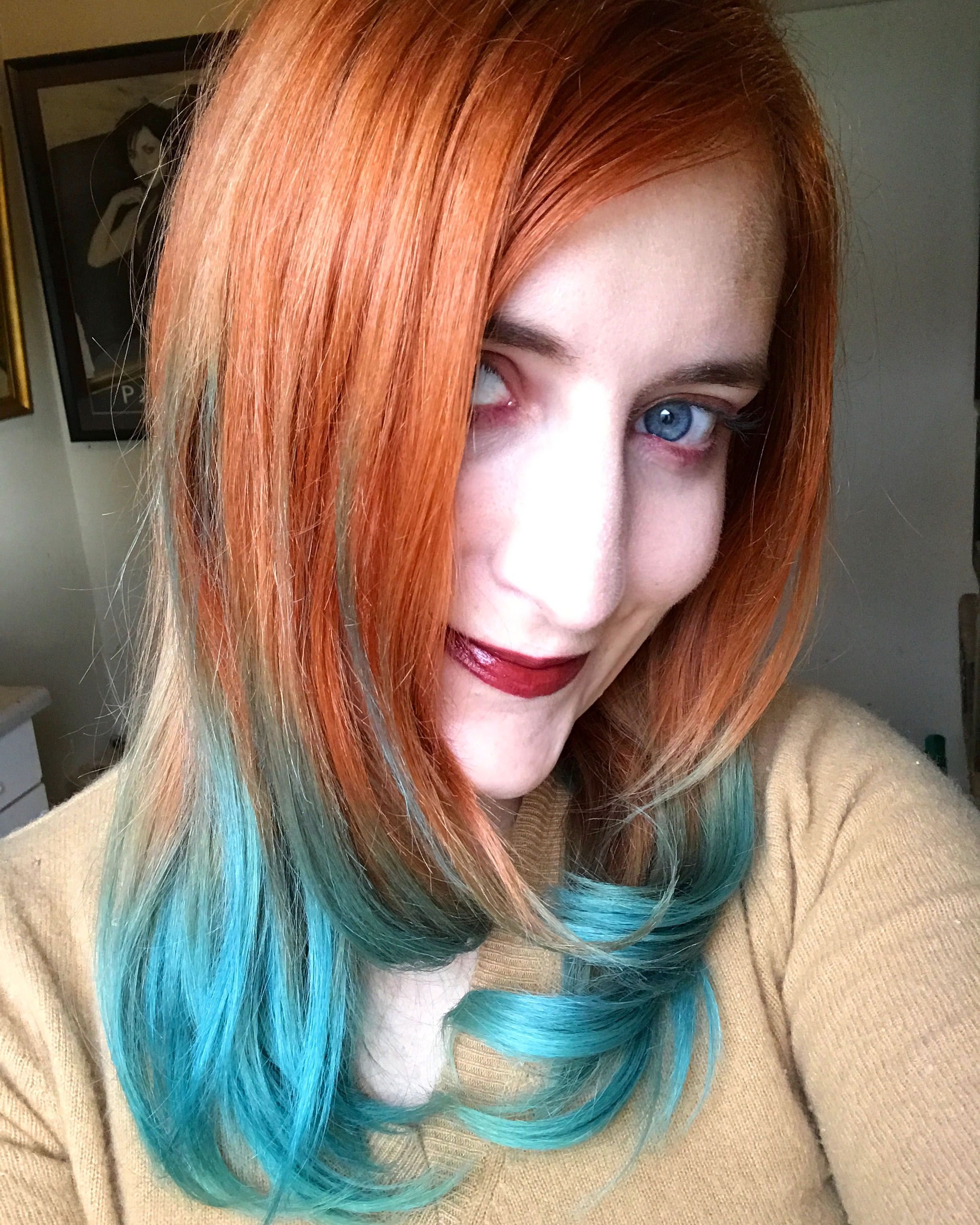 Рыже голубые волосы