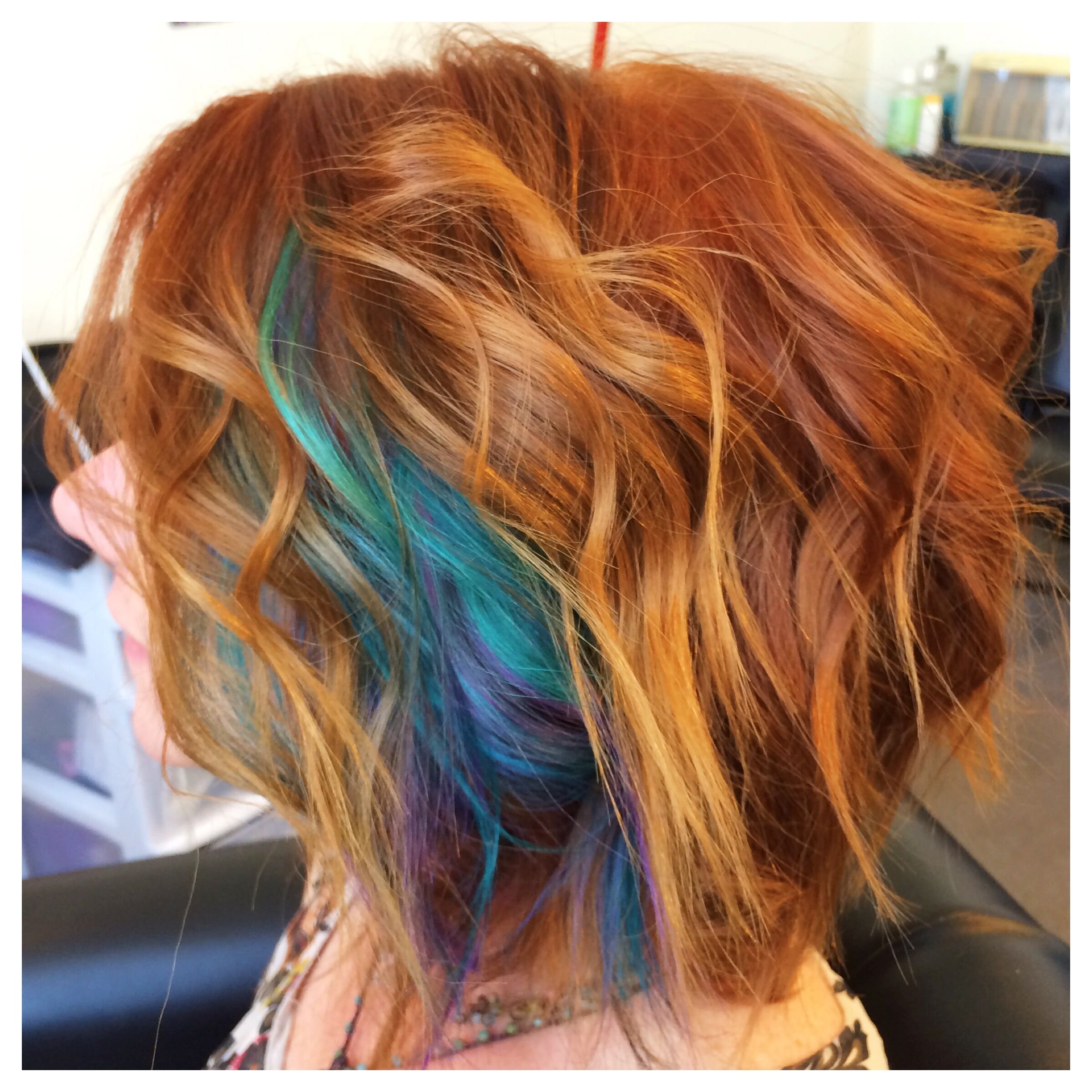 Рыжие волосы с разноцветными прядями