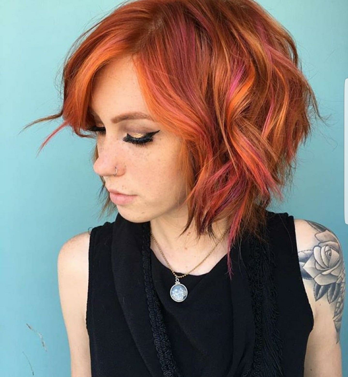 Рыжие волосы с розовыми прядями