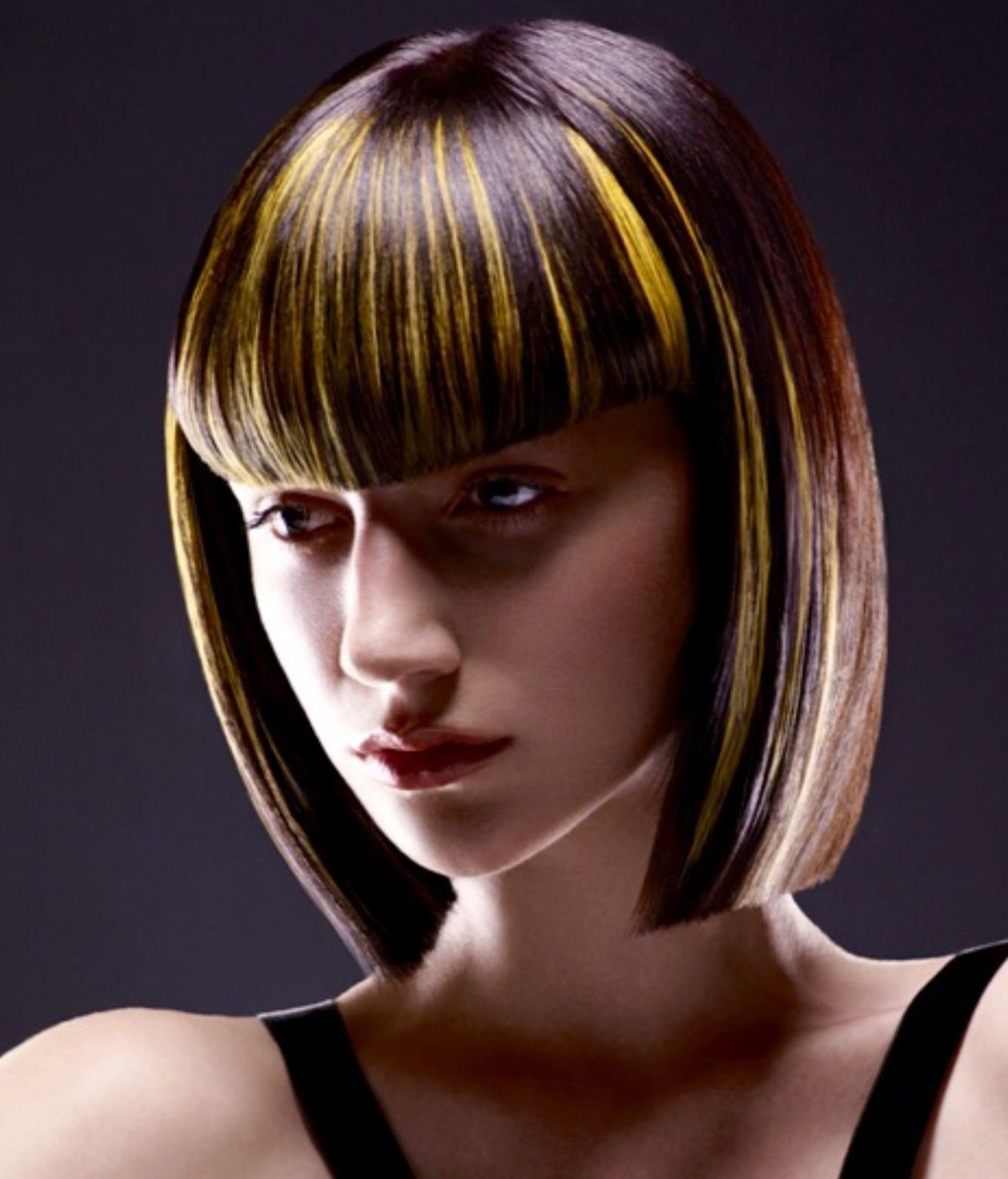 Мелирование на темные волосы с прямой челкой