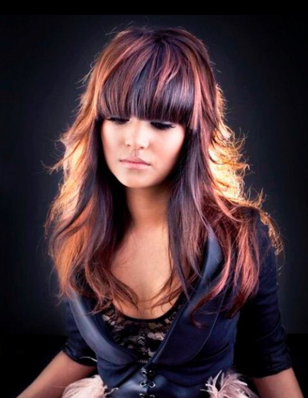 Мелирование на длинные волосы с челкой