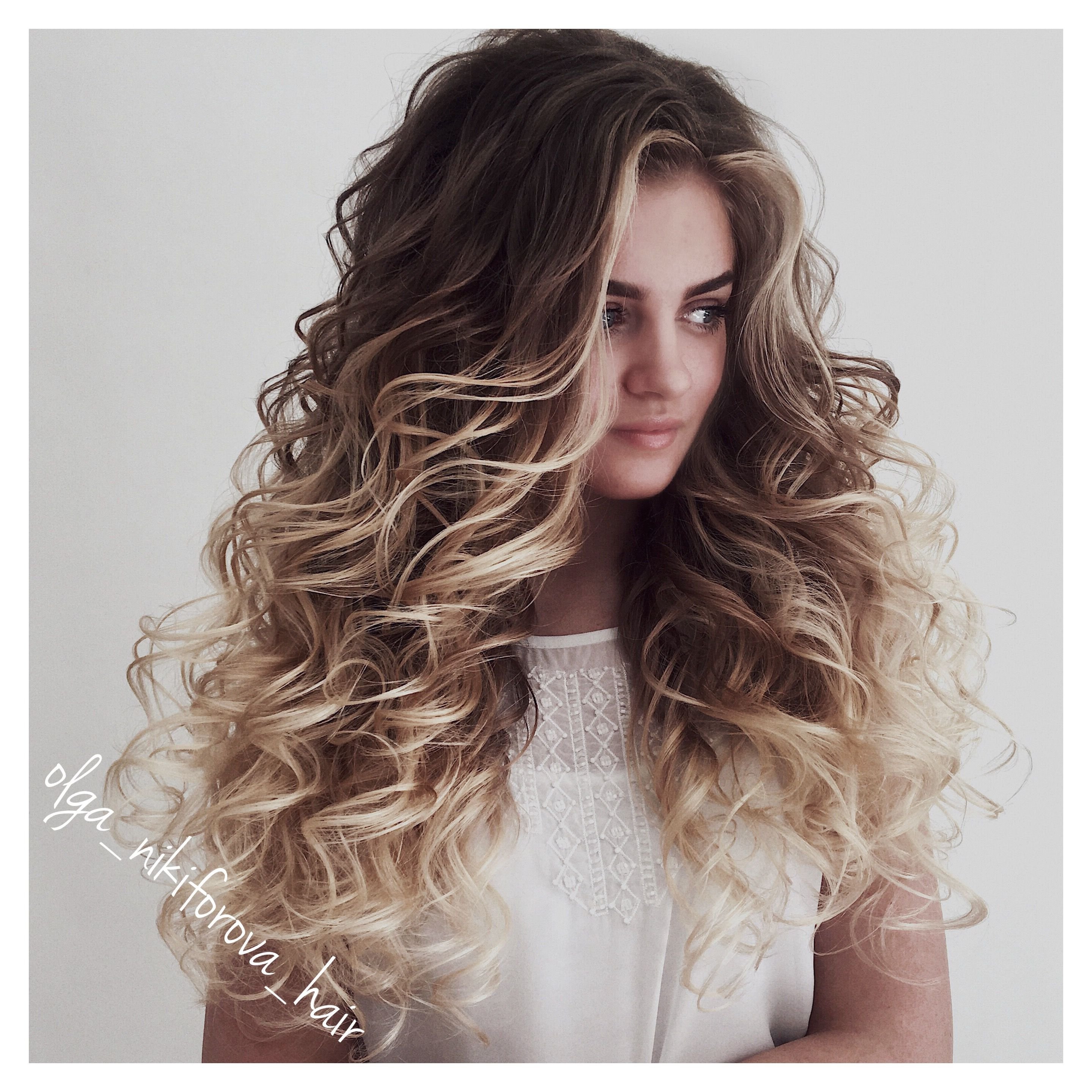 Накрученные волосы длинные светлые