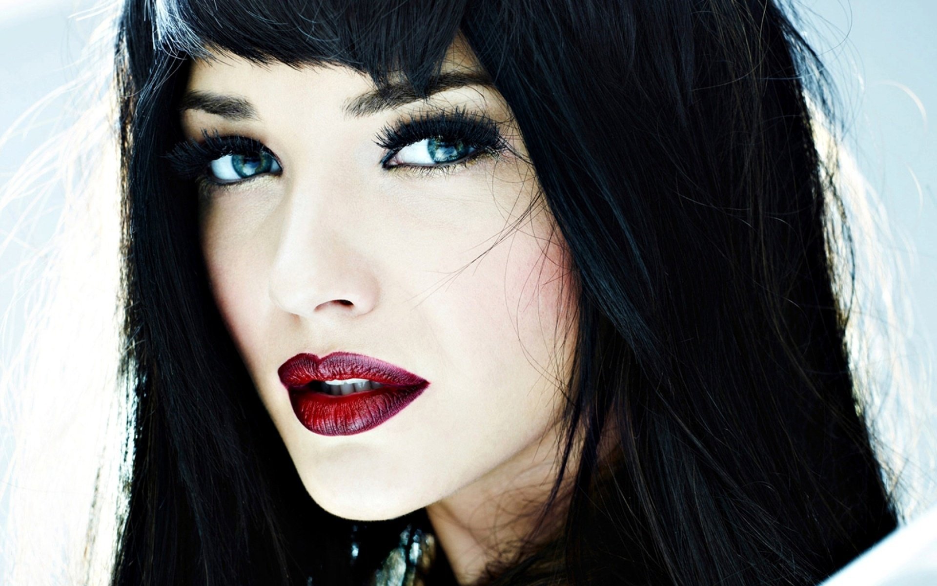Женщина с черными волосами и голубыми глазами
