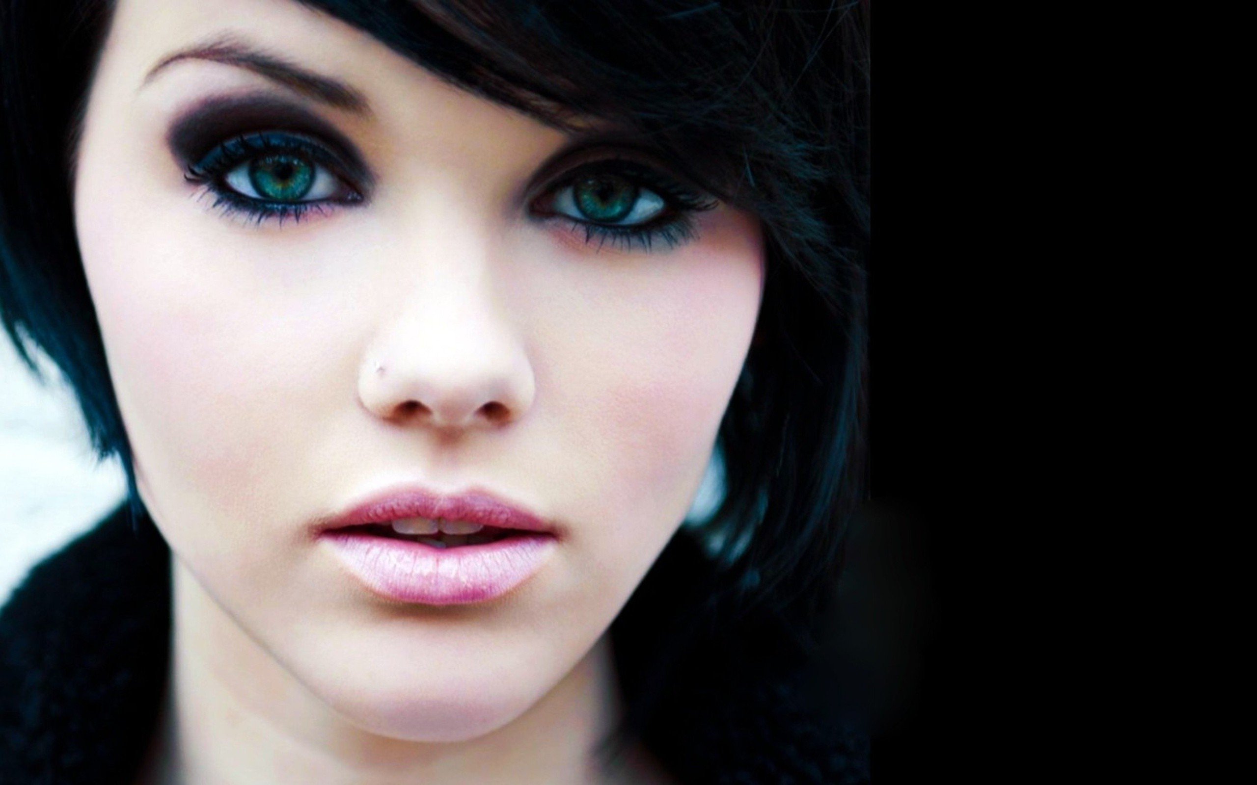 Девушка с чёрными волосами и голубыми глазами