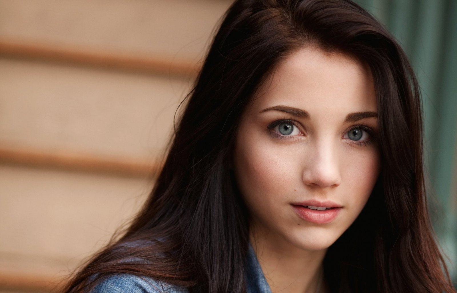 Девушка с каштановыми волосами и голубыми глазами