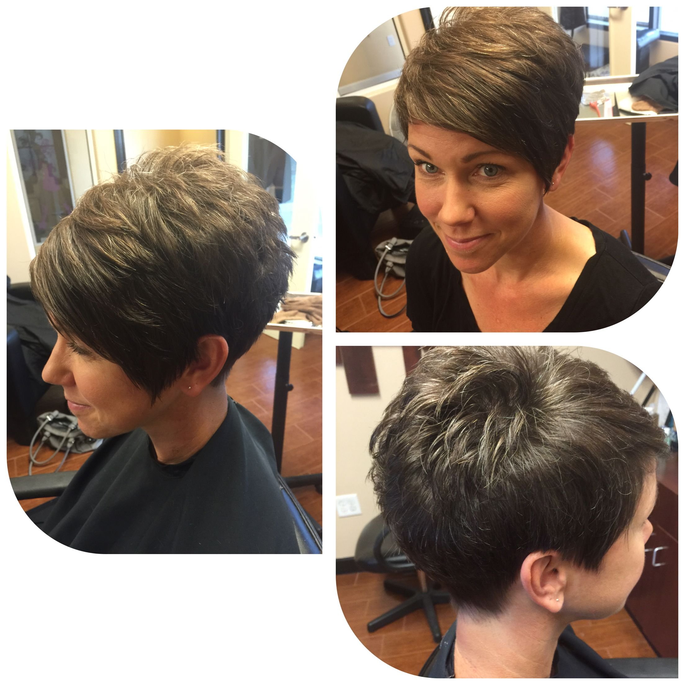 Стрижка Гарсон на короткие волосы для женщин за 50 вид спереди и сзади
