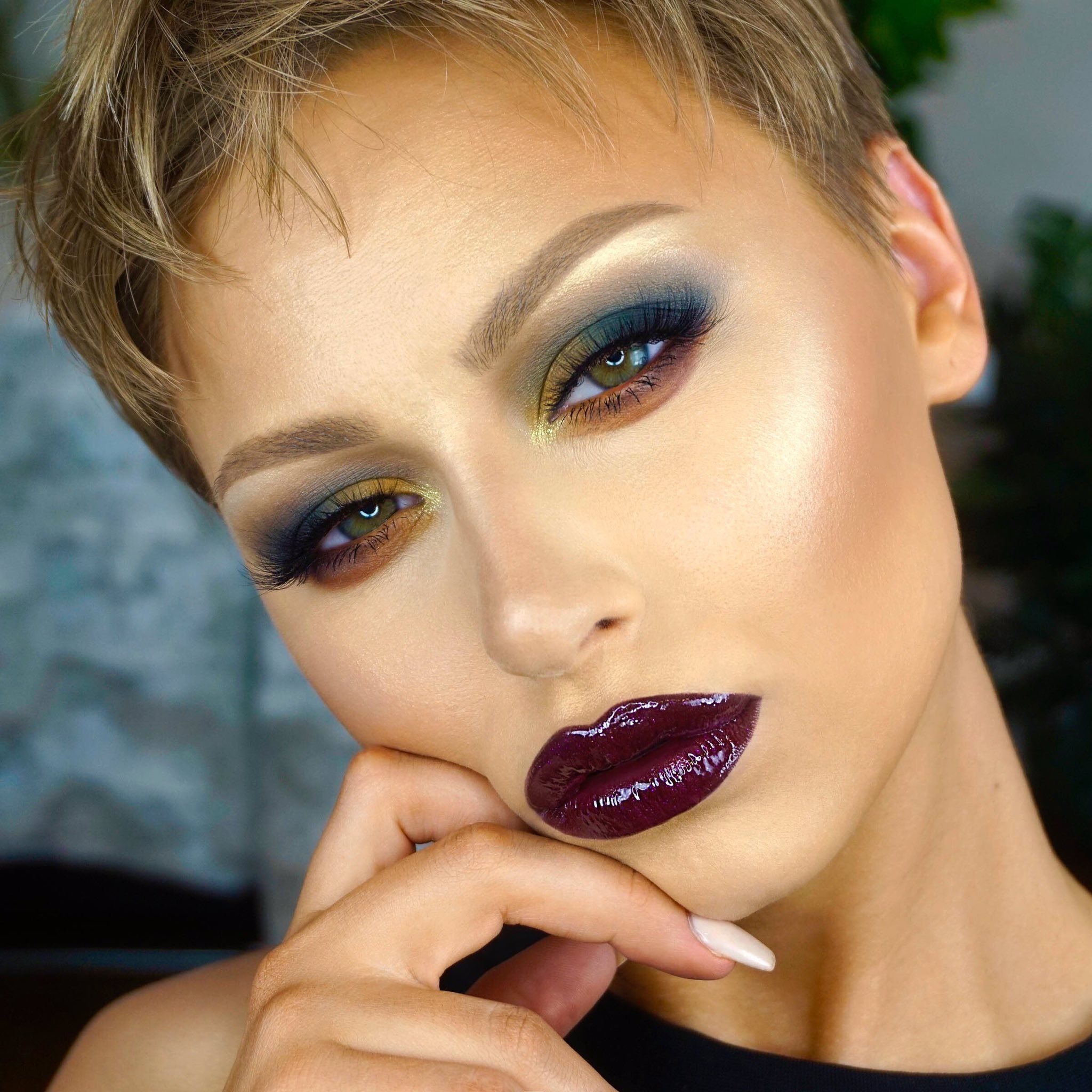 Макияж с бордовой помадой