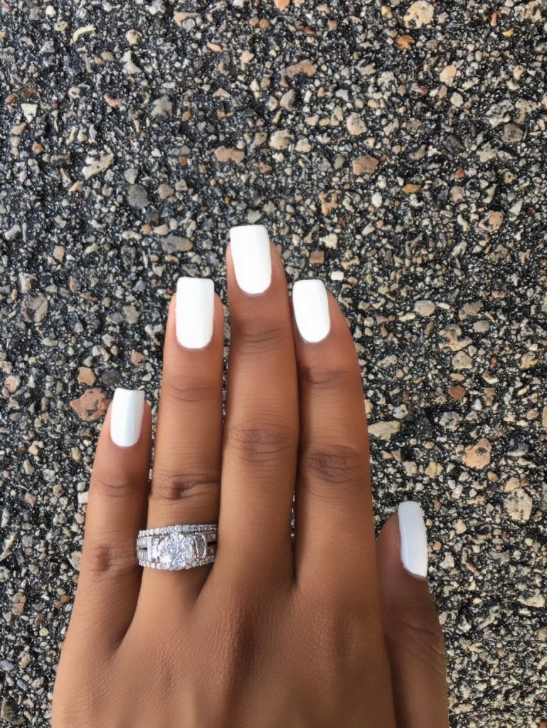 Маникюр белый квадрат короткий