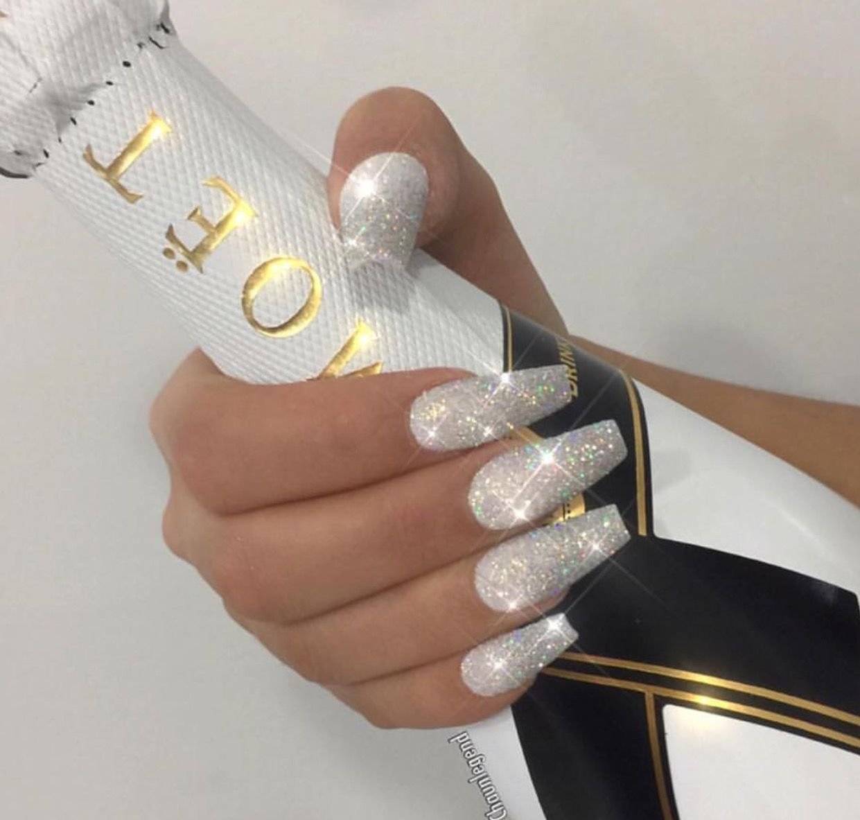 Белые квадратные ногти с блестками
