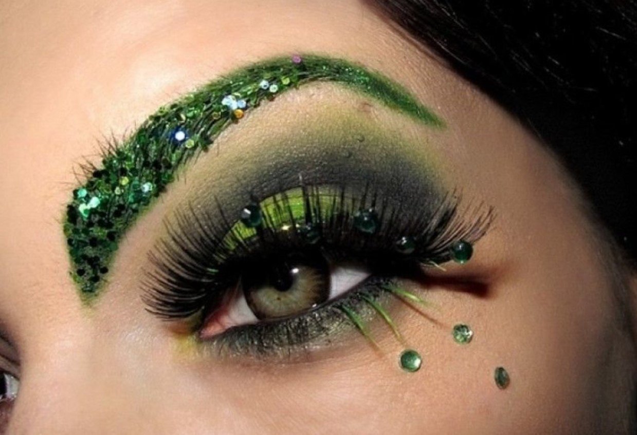 Макияж с зелеными блестками