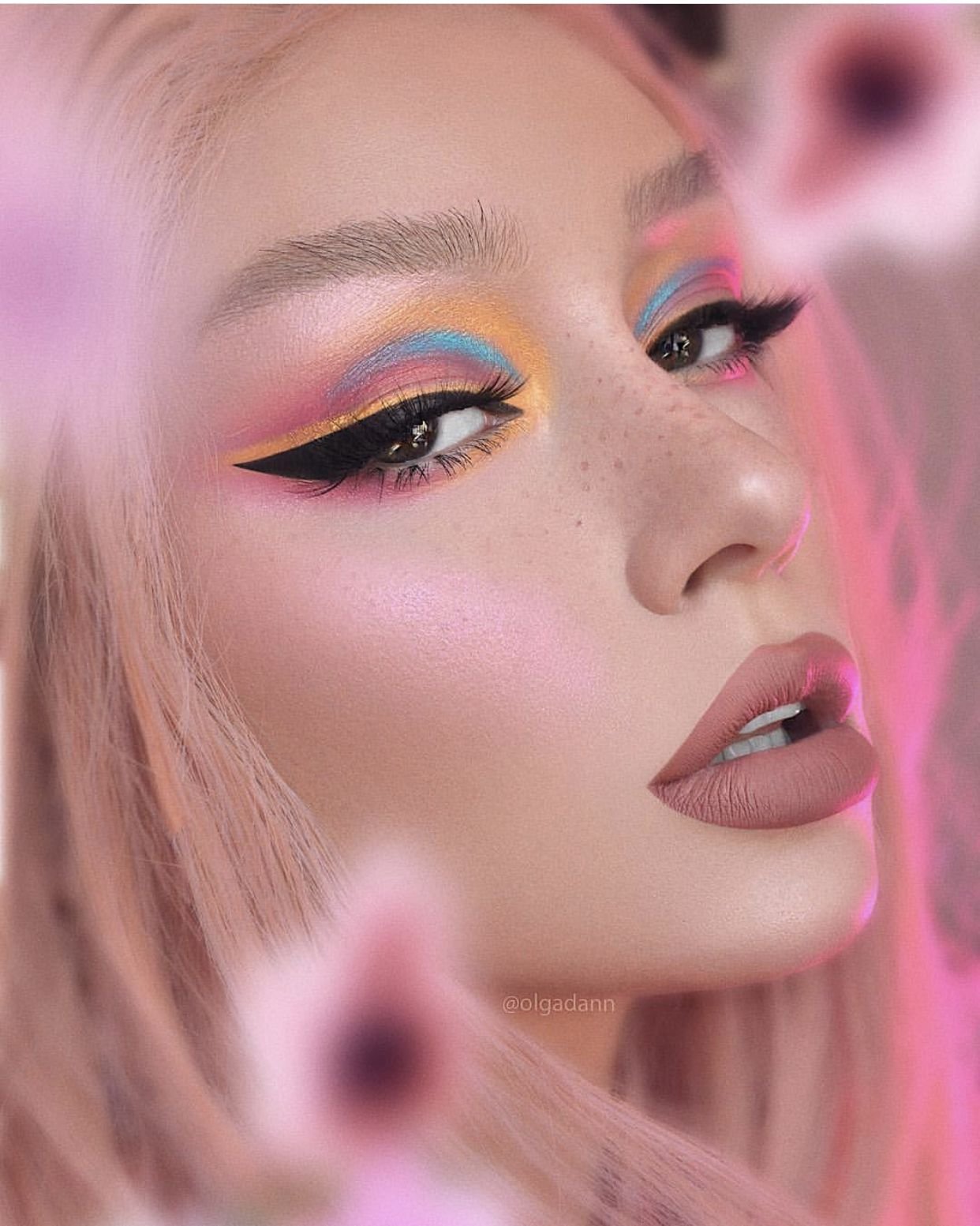 Макияж яркий розовый бирюзовый