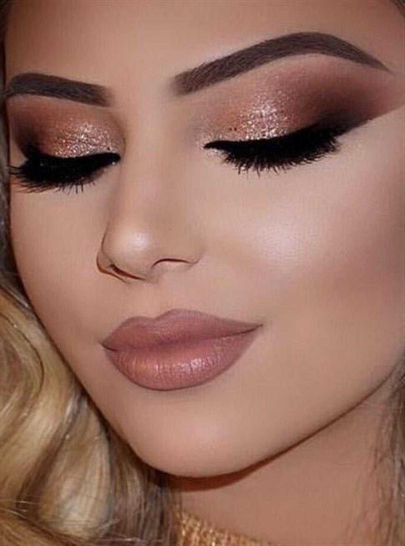 Макияж и прическа под золотое платье