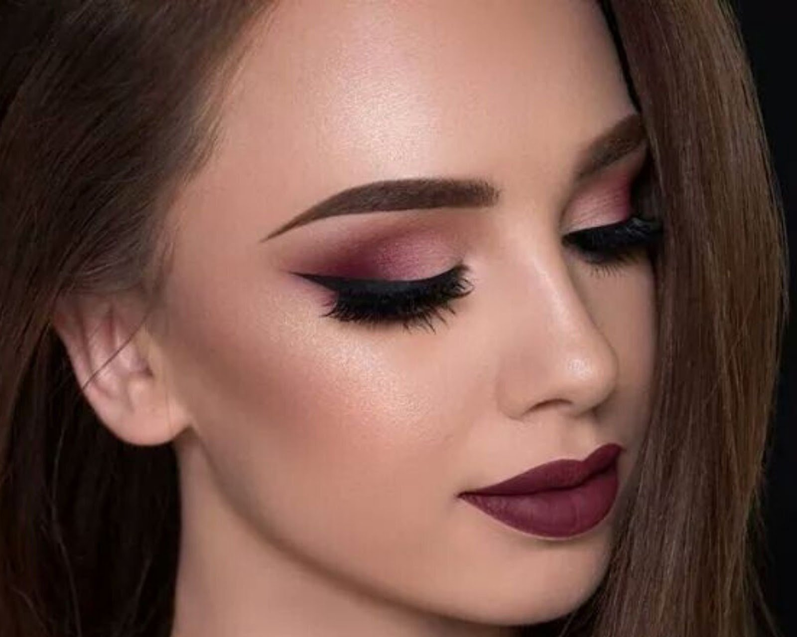 Розовый макияж для брюнеток