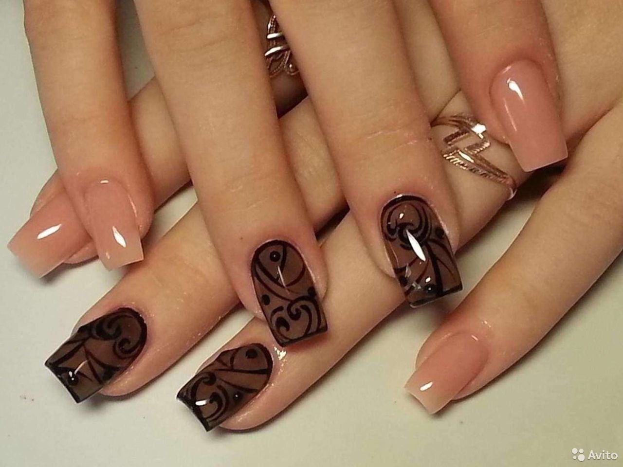 Нюдовый маникюр на миндалевидных ногтях 2021