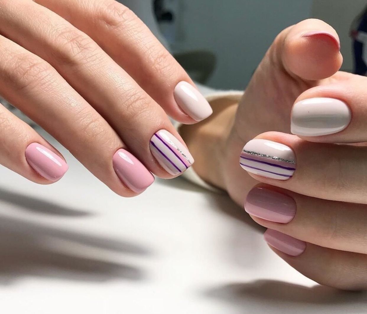 Маникюр в пастельных тонах с полосками