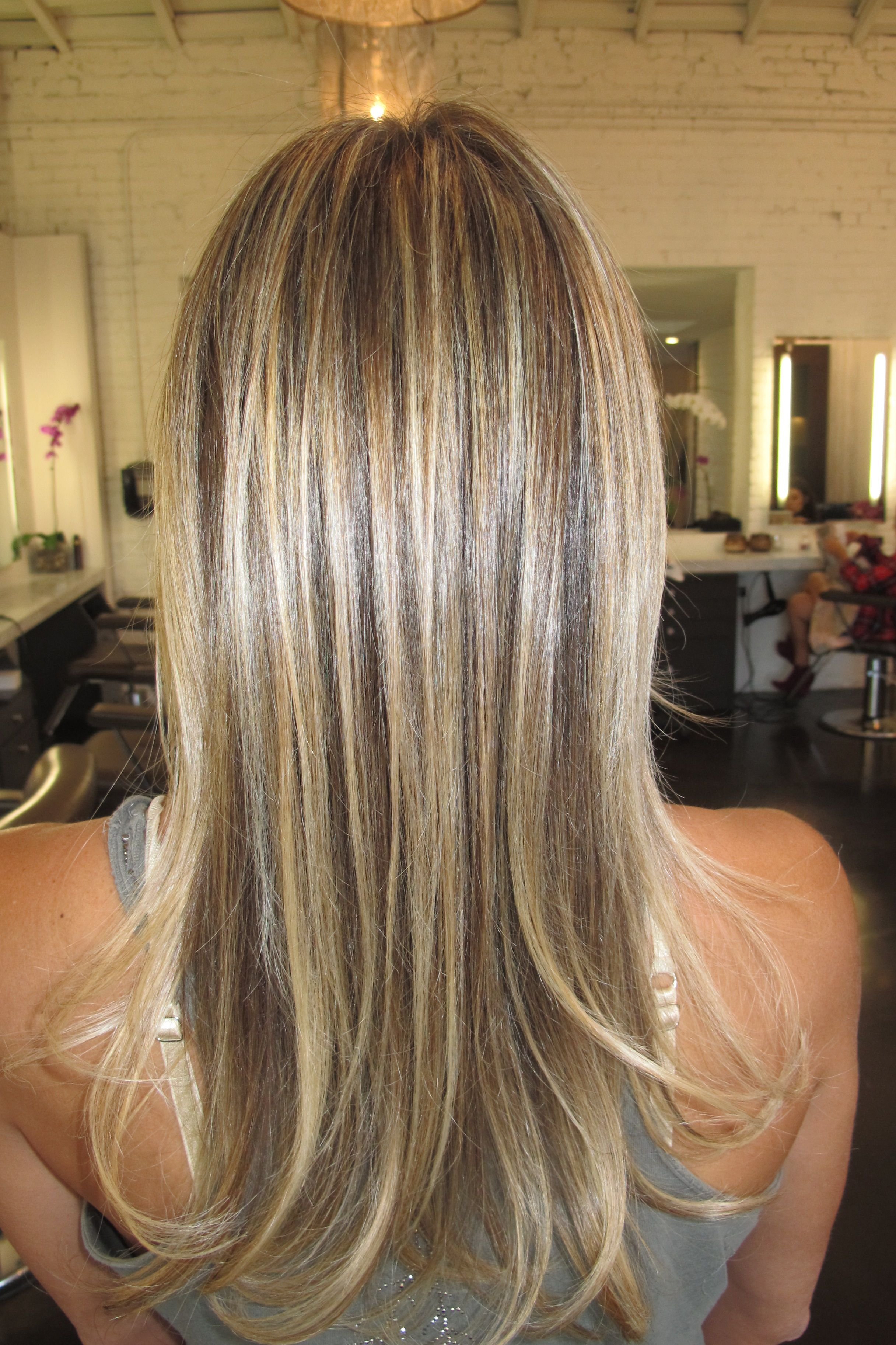 Крупное мелирование на длинные волосы