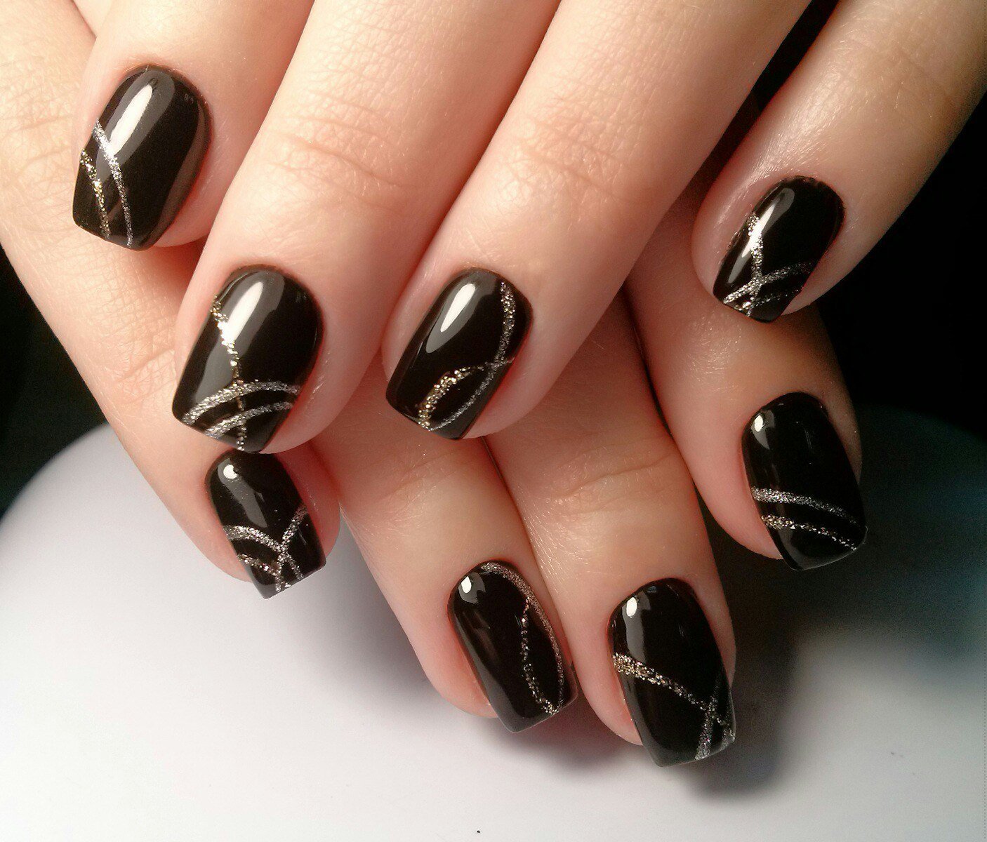 Ногти чёрные с серебром