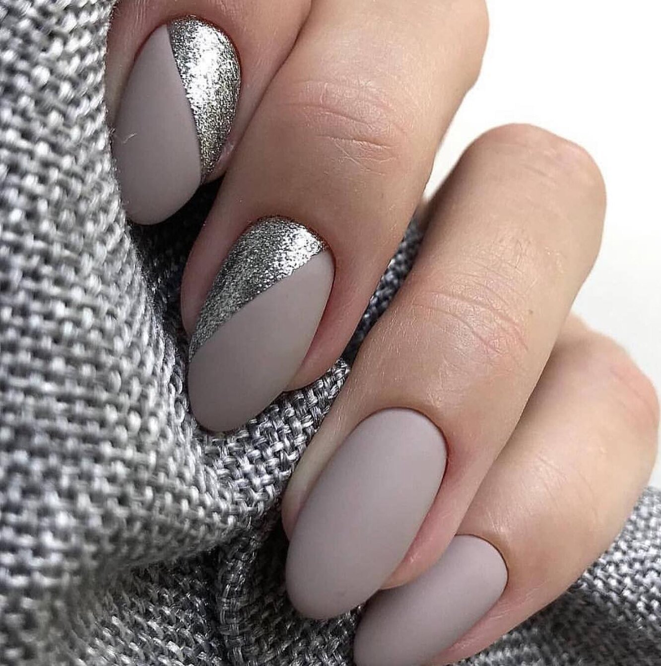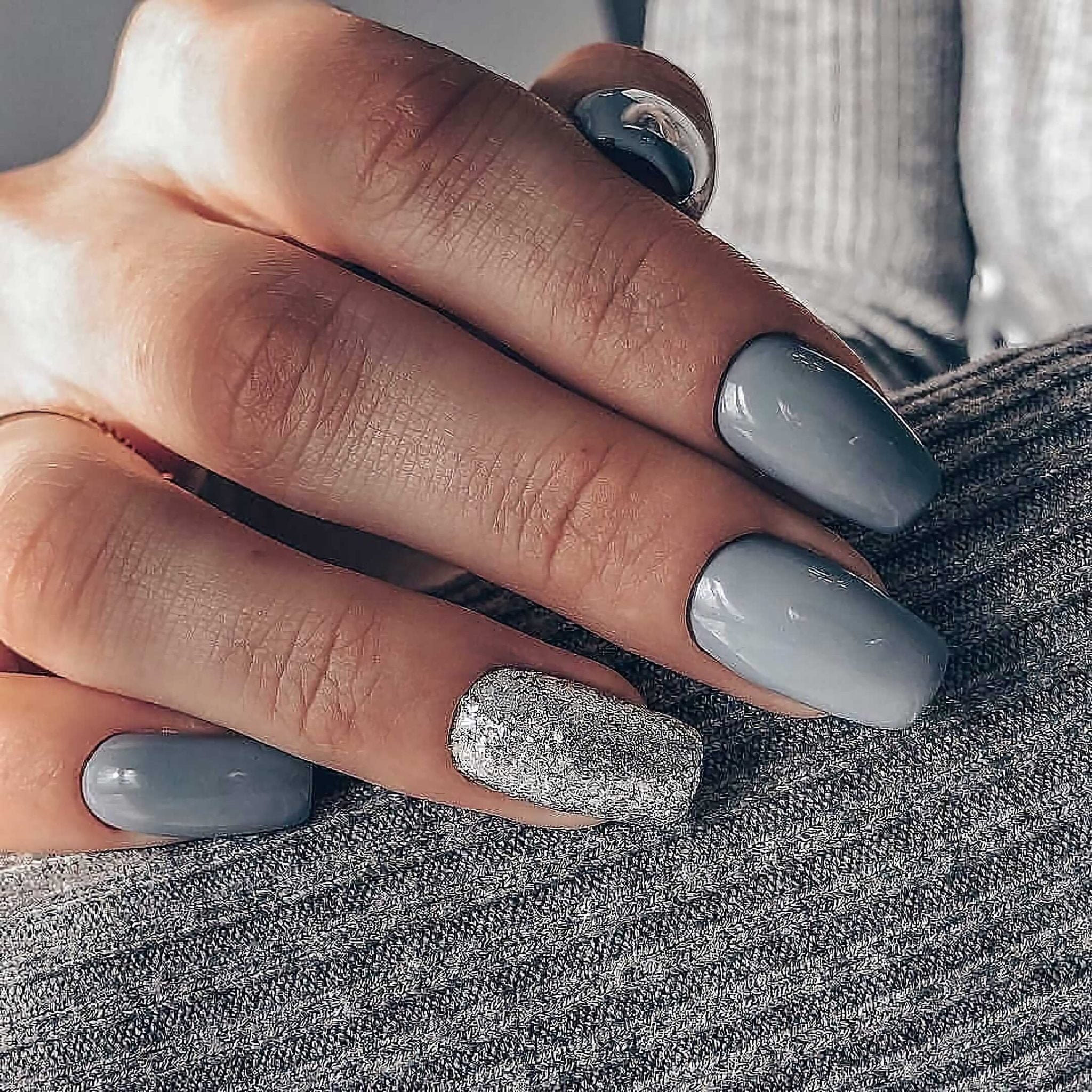 Серый маникюр 2022 миндаль