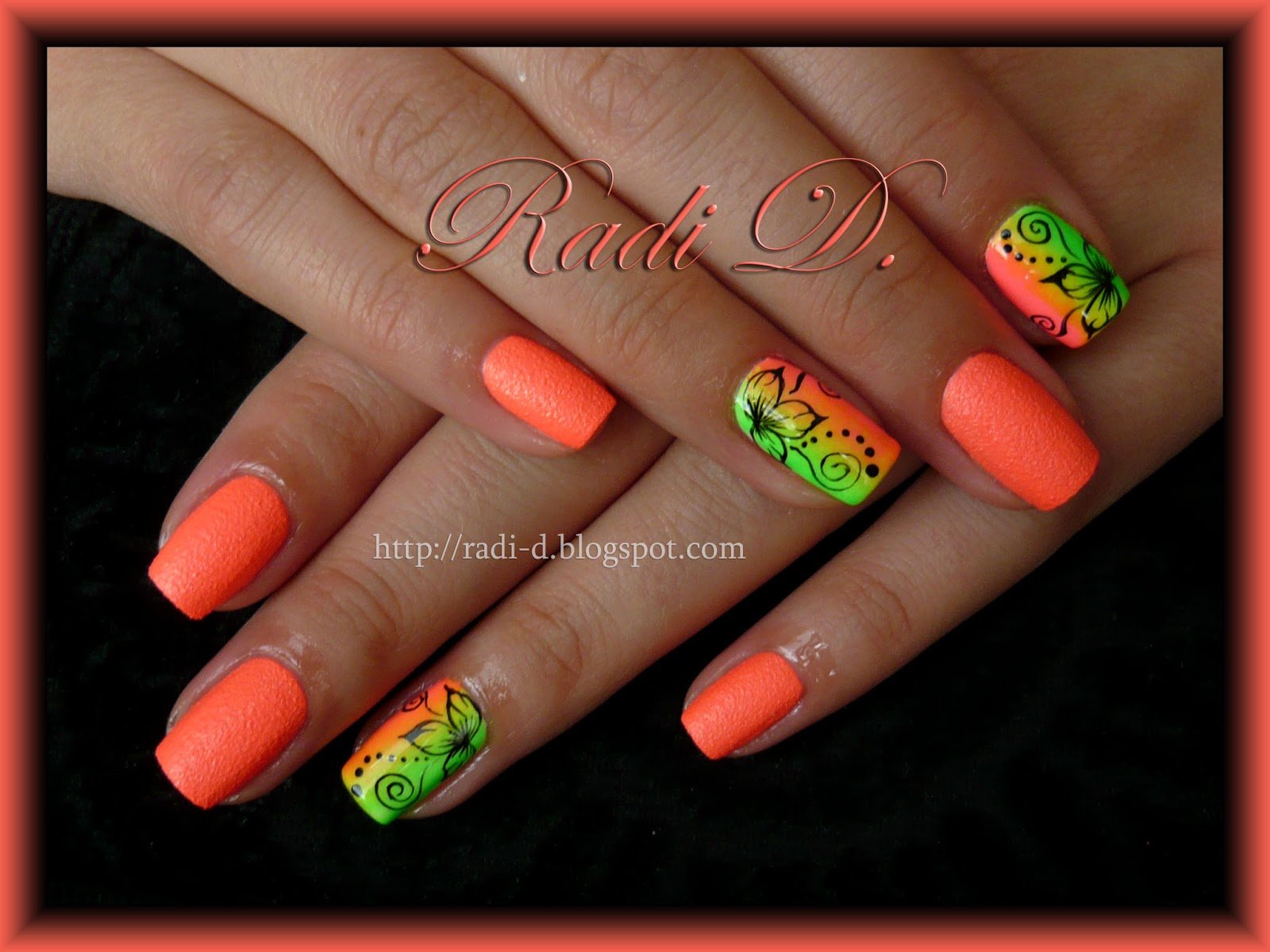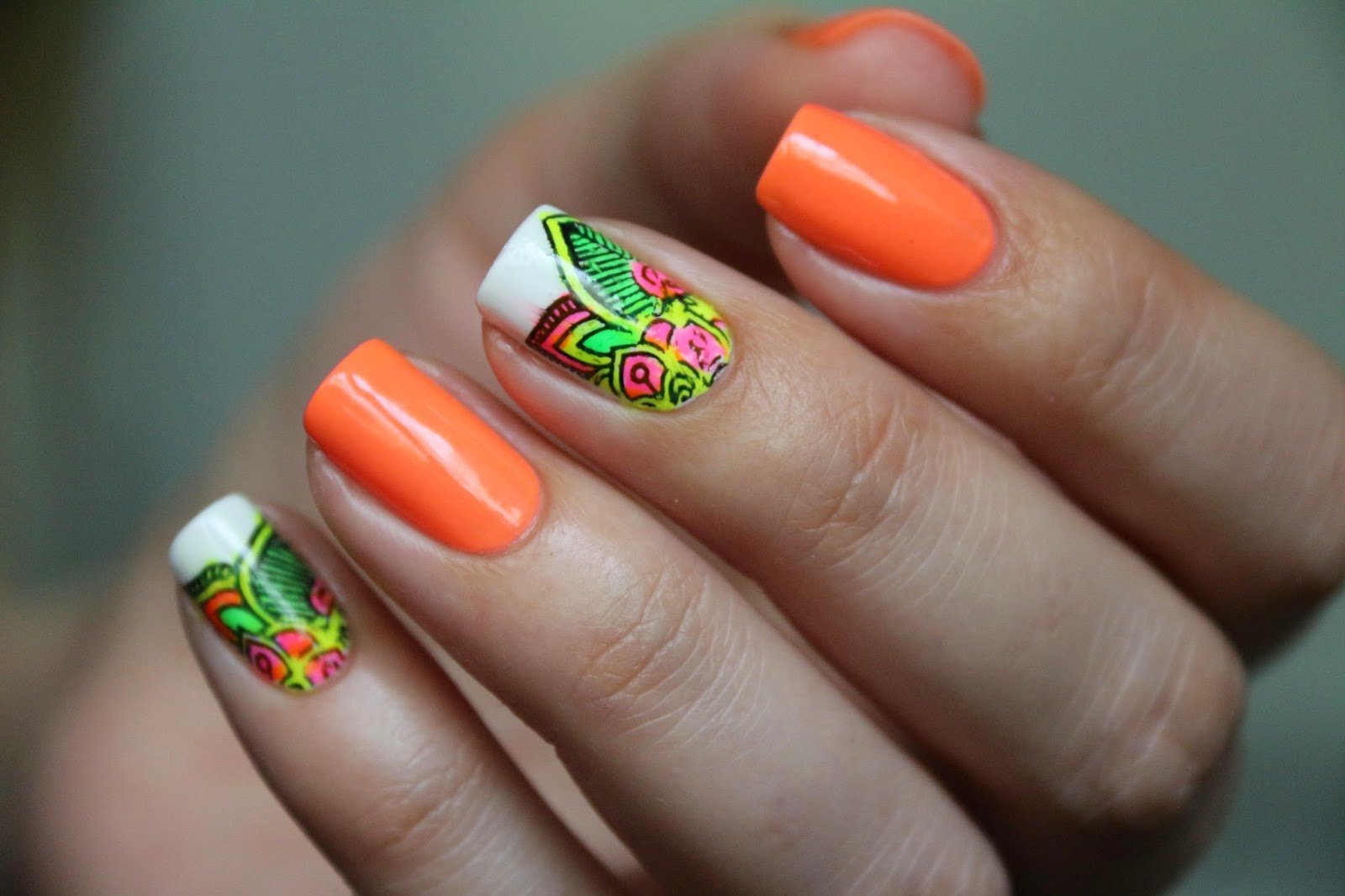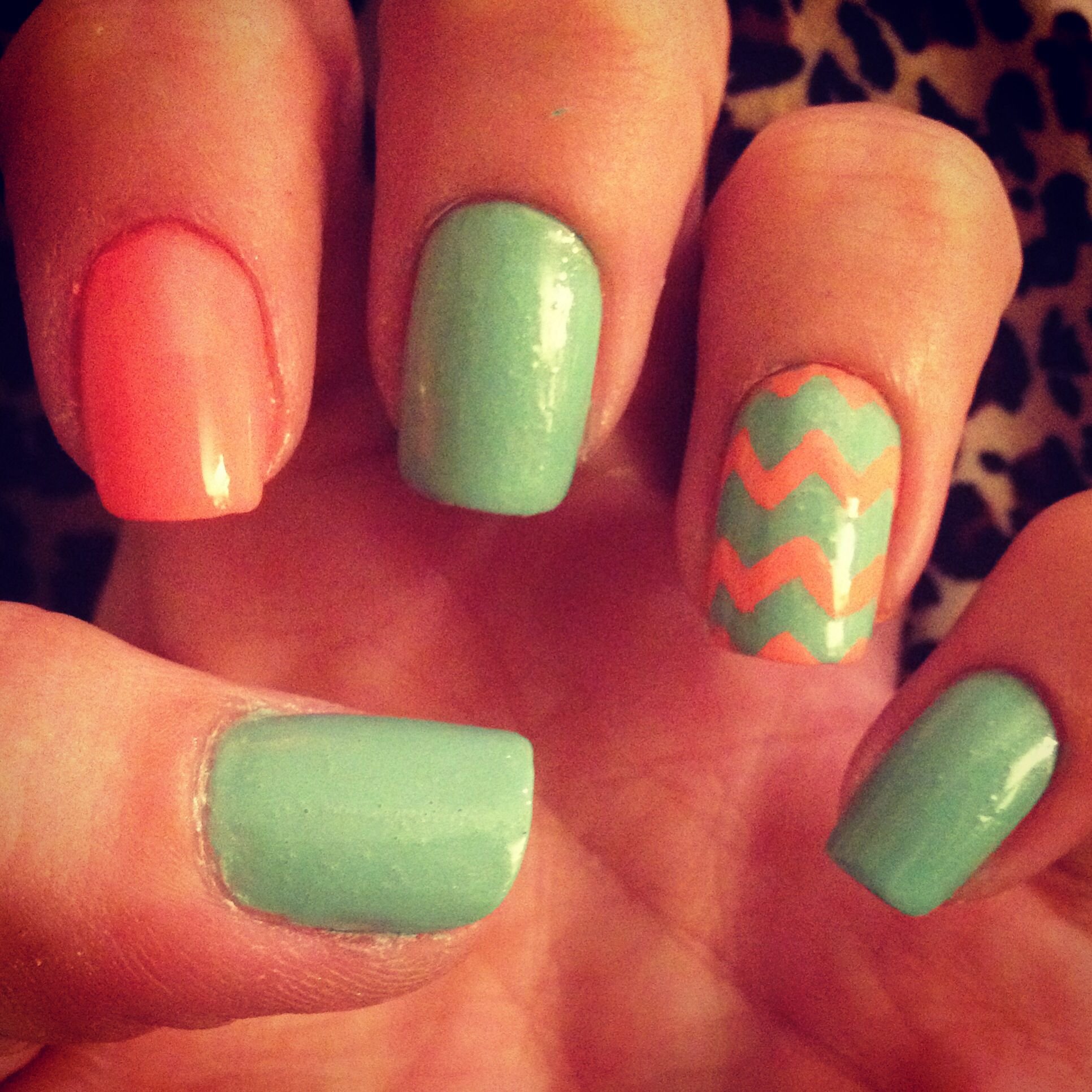 Салатово оранжевый маникюр