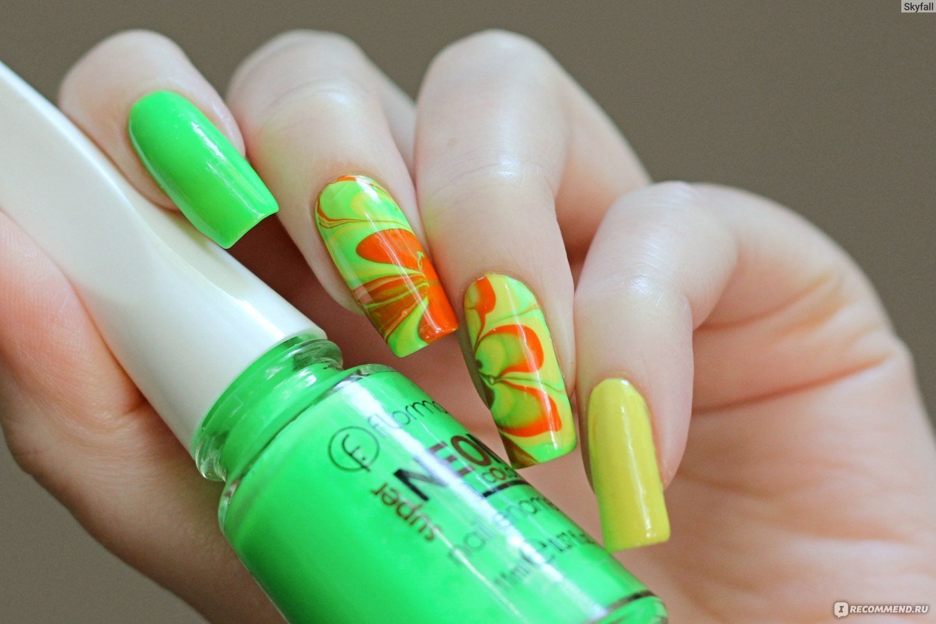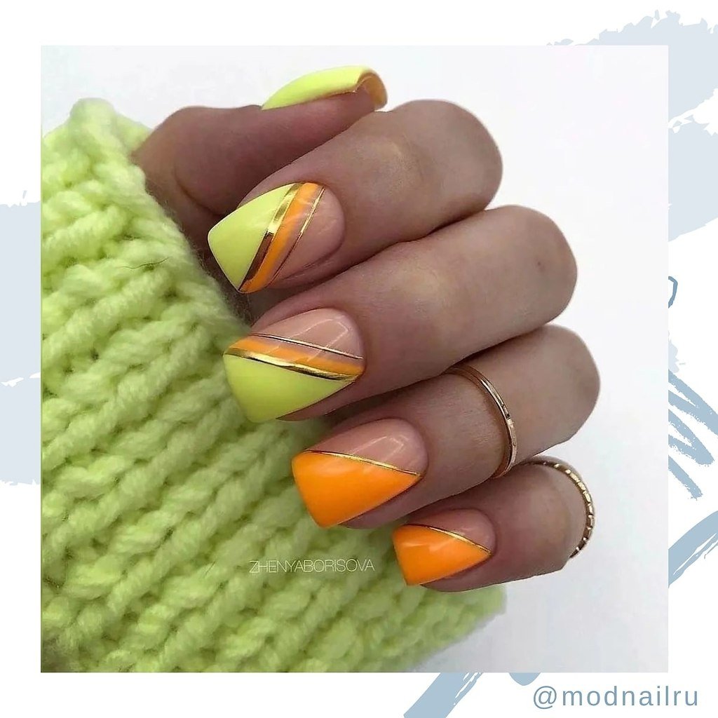 Маникюр салатовый оранжевый