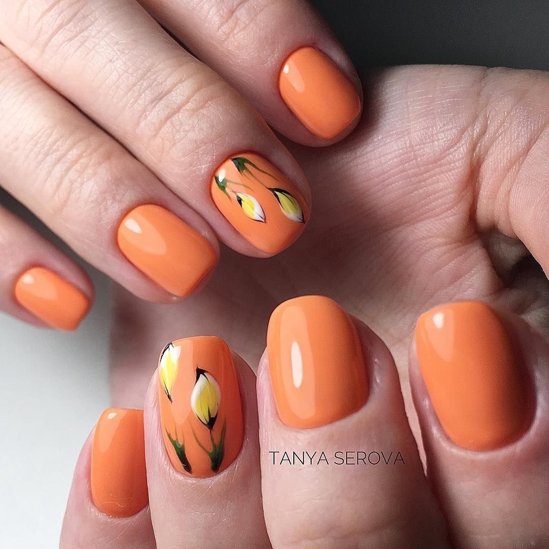 Оранжевый маникюр на короткие ногти