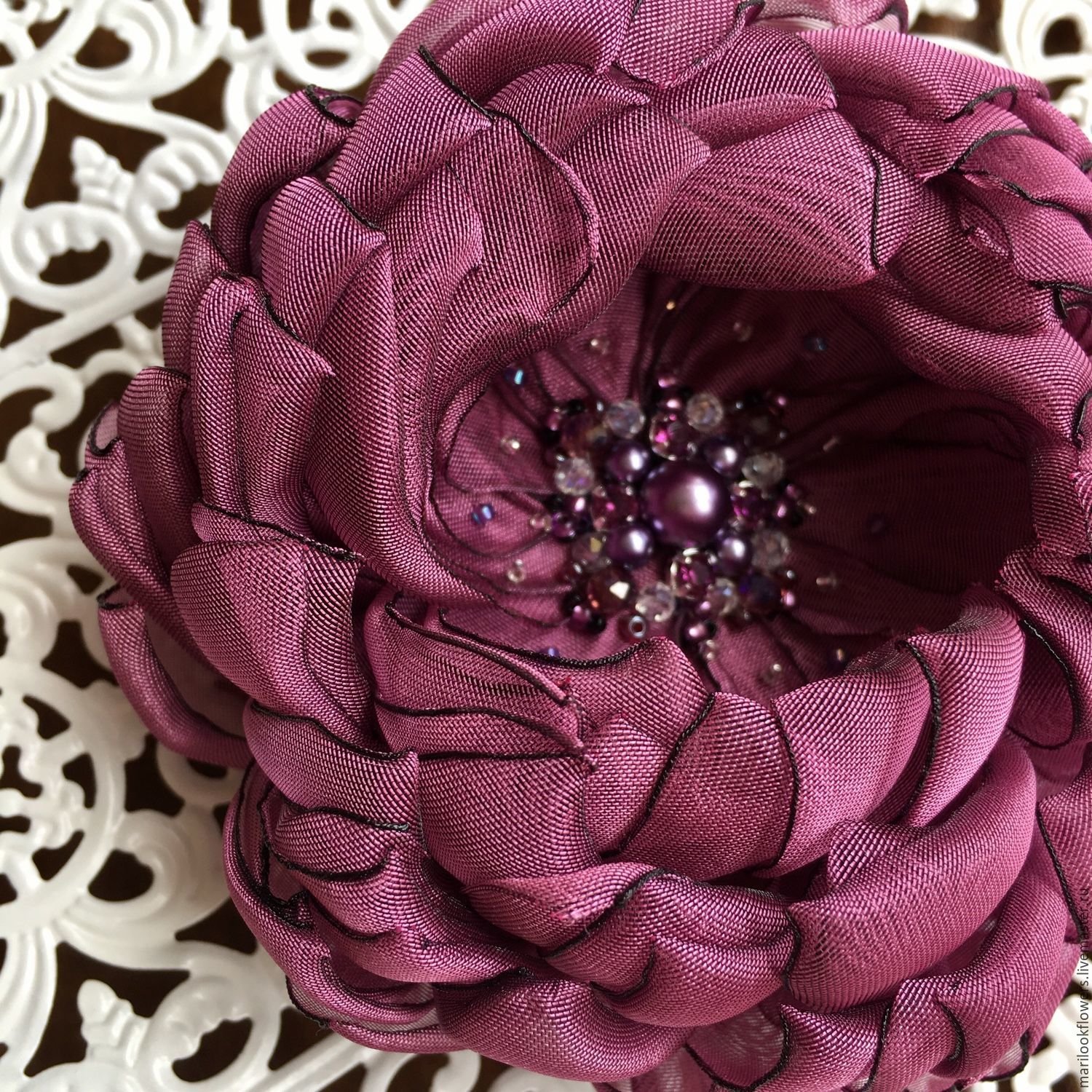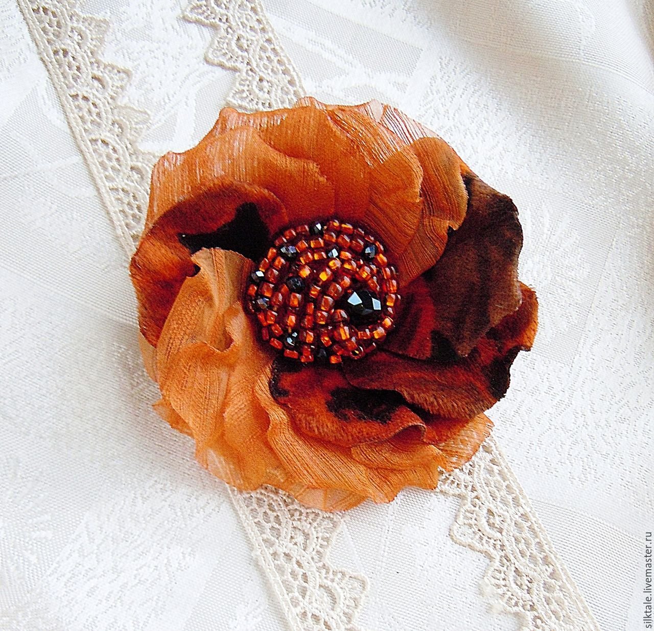 Брошь цветок из шелка