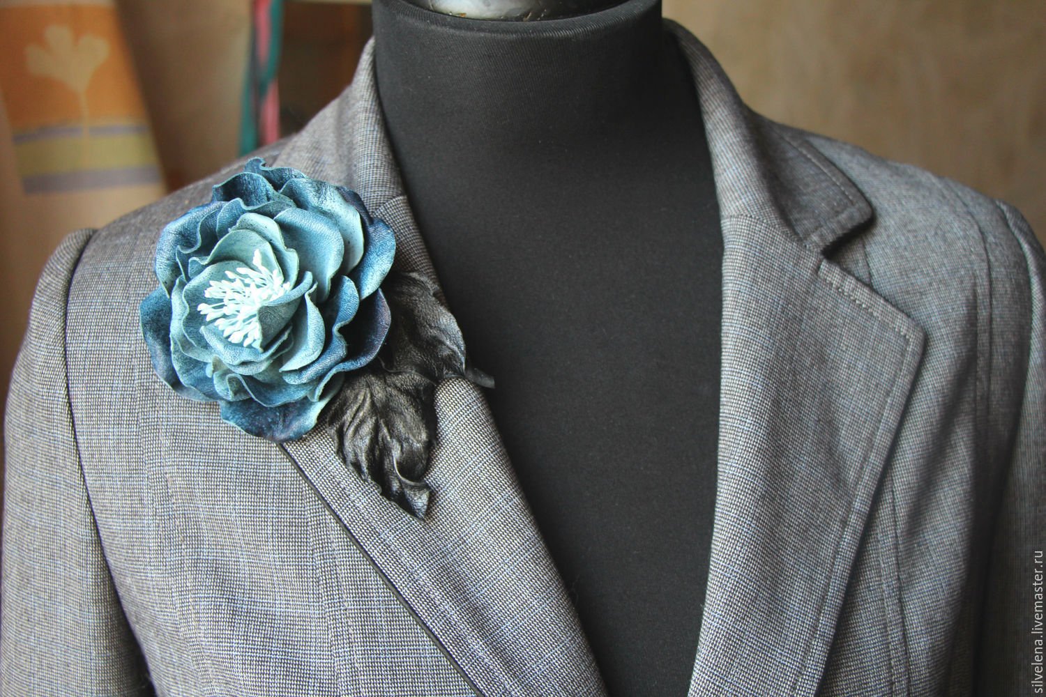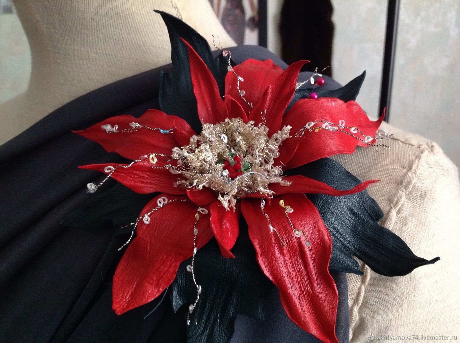 Кожаные цветы броши