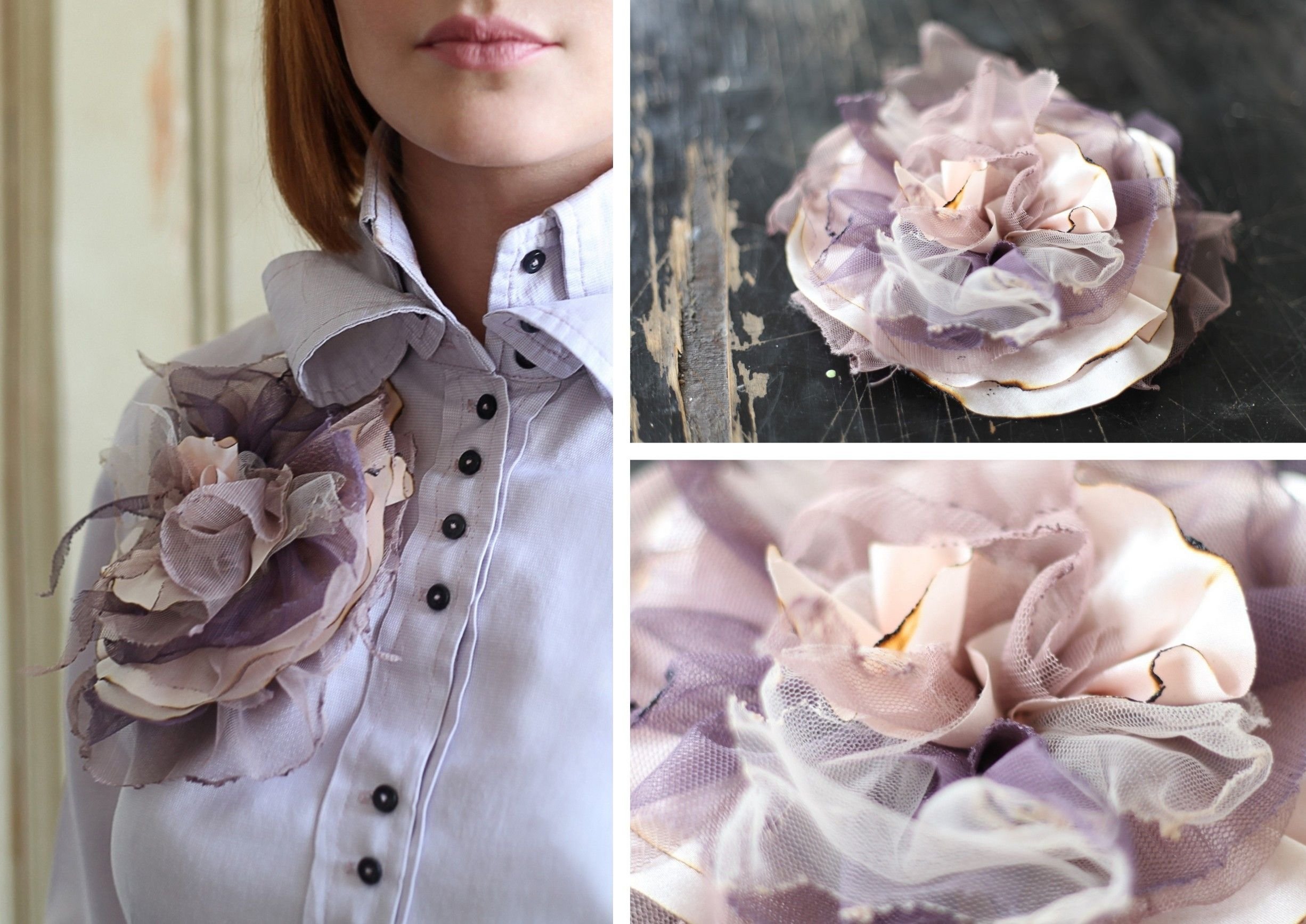 Цветы из фатина брошка