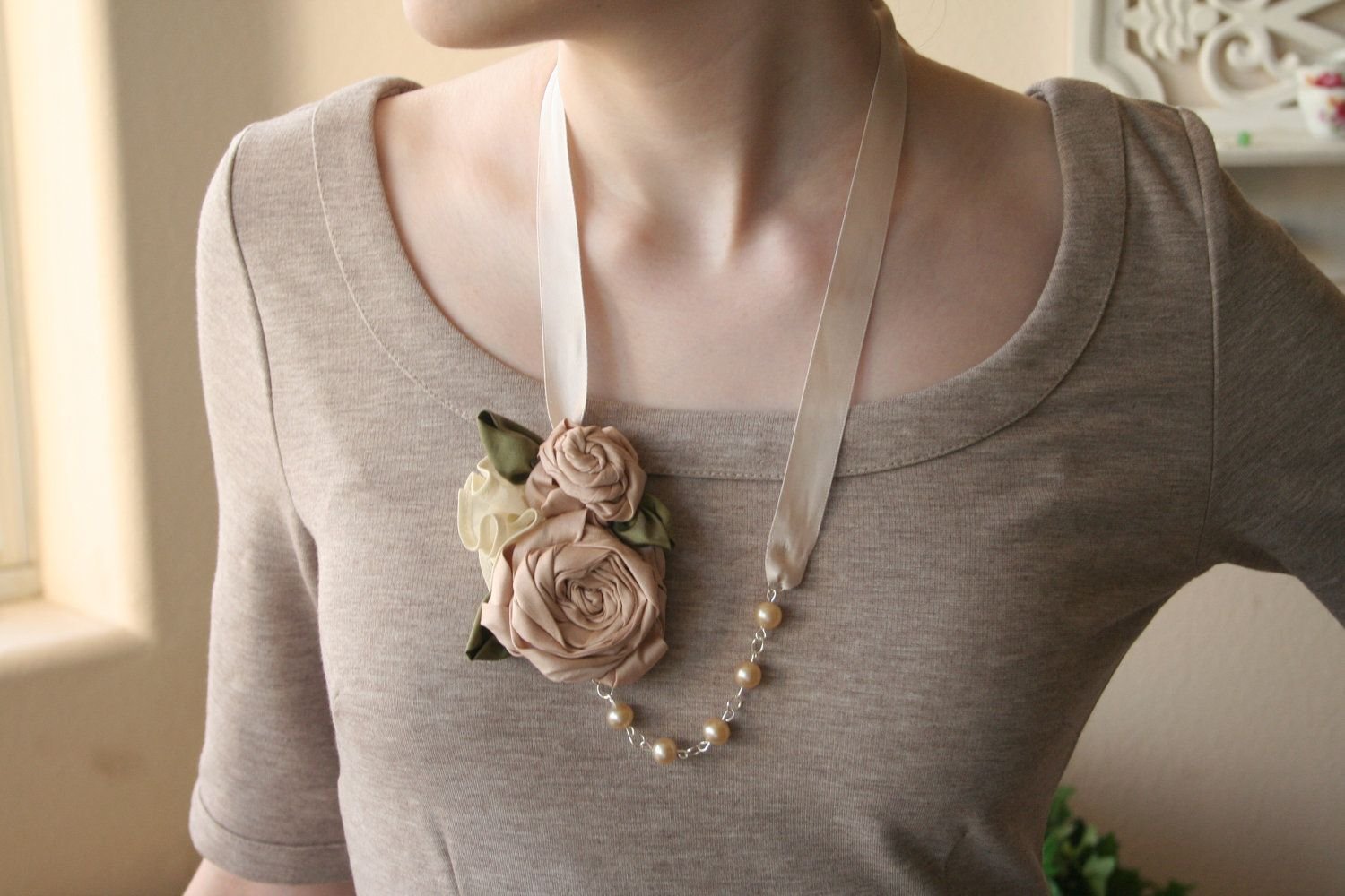 Колье из ткани и лент