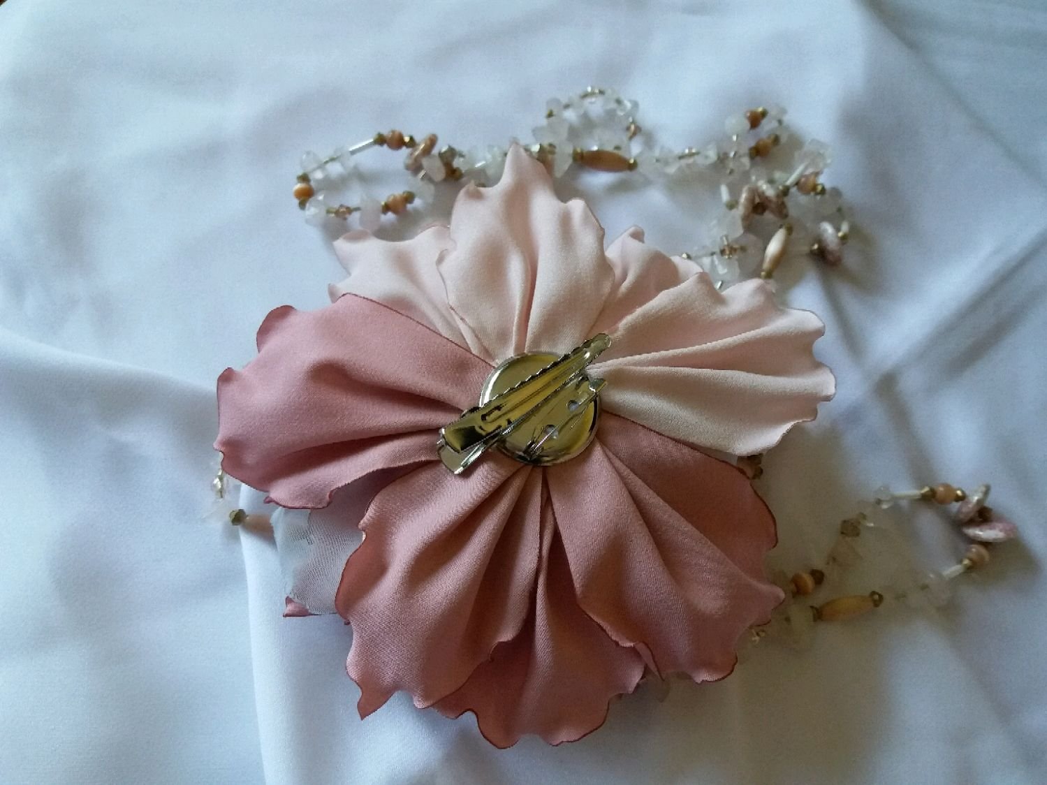 Брошь цветок из ткани на платье