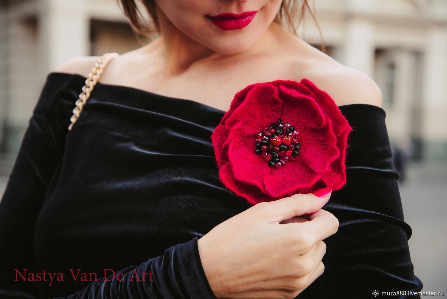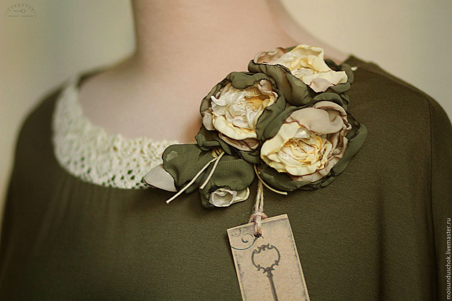 Брошь из ткани на платье