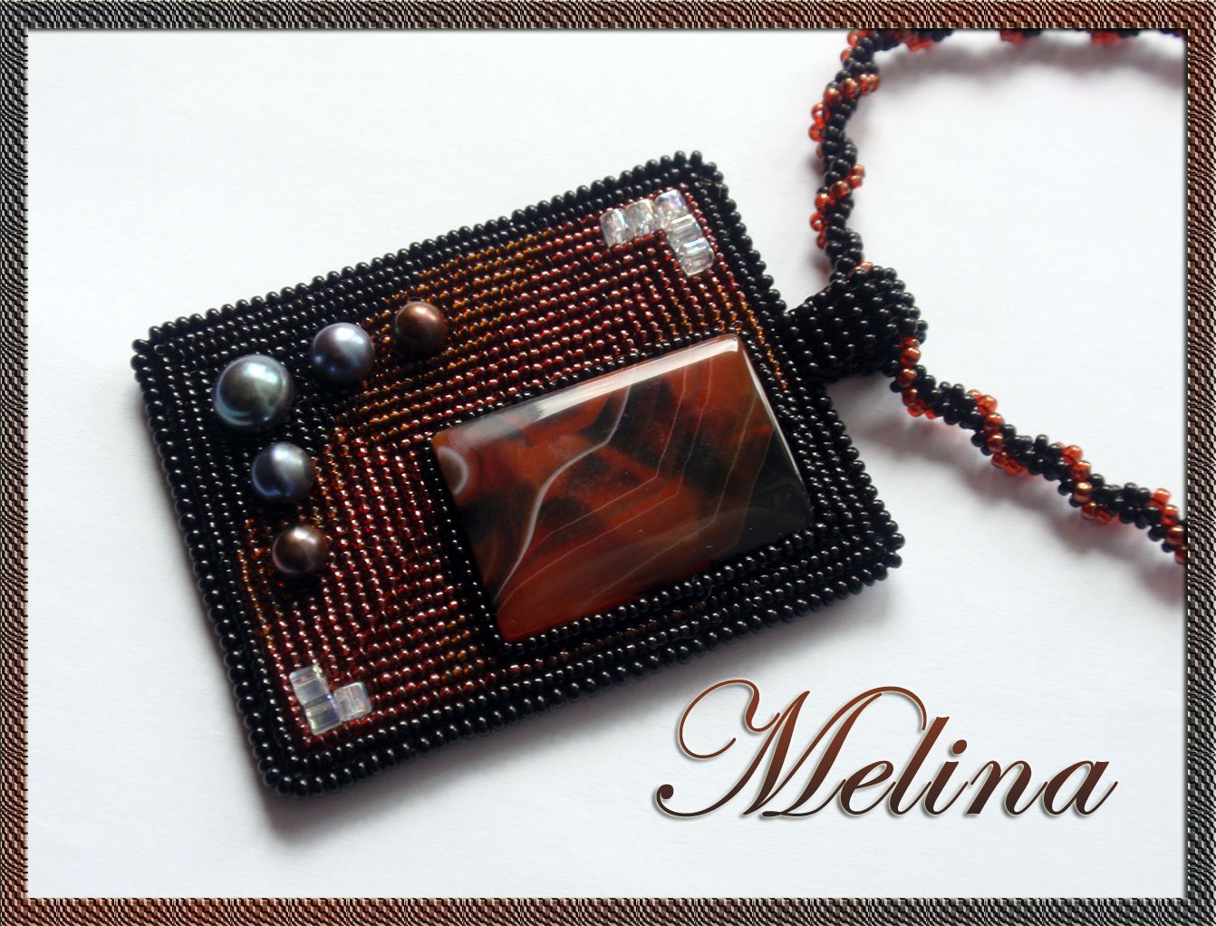 Кулон из кабошона и бисера