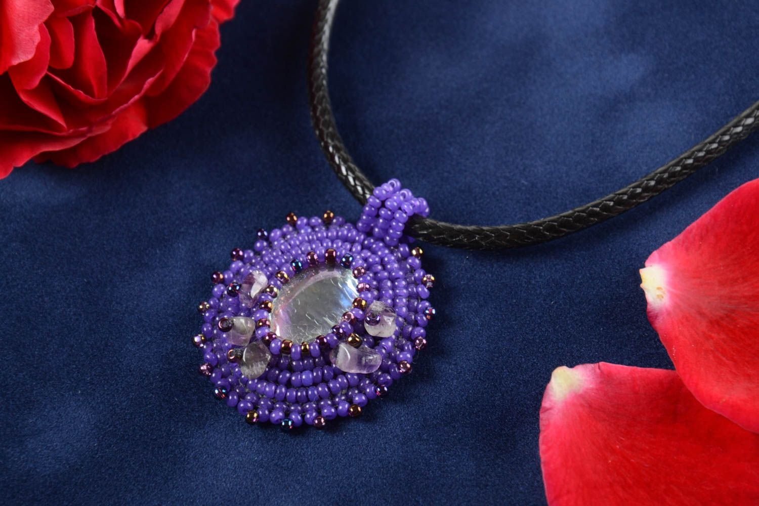 Кулон из бисера и камнями