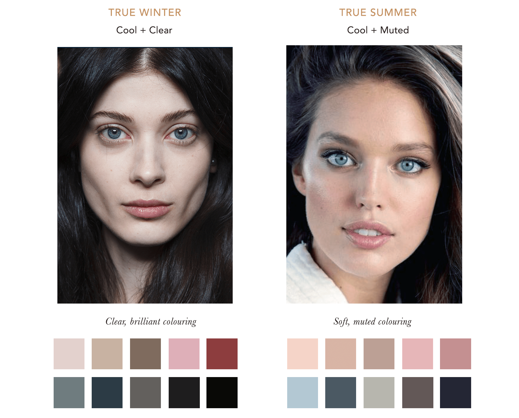 Мягкая зима цветотип палитра