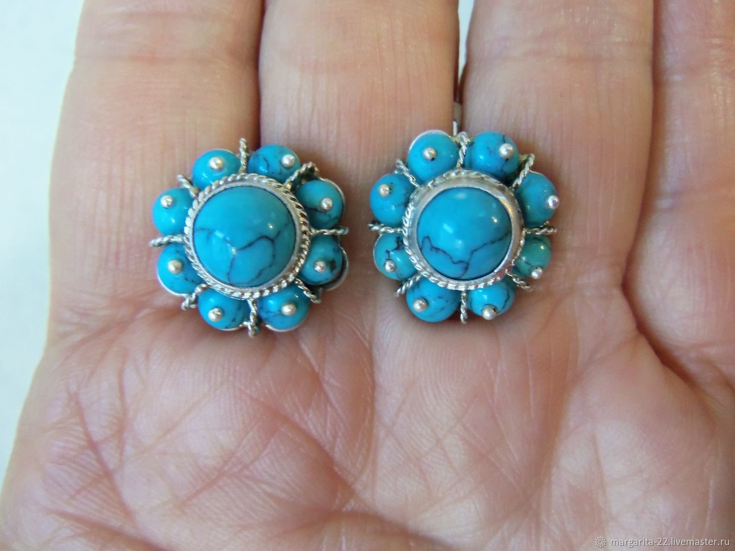 Милана силаер серьги с натуральной бирюзой