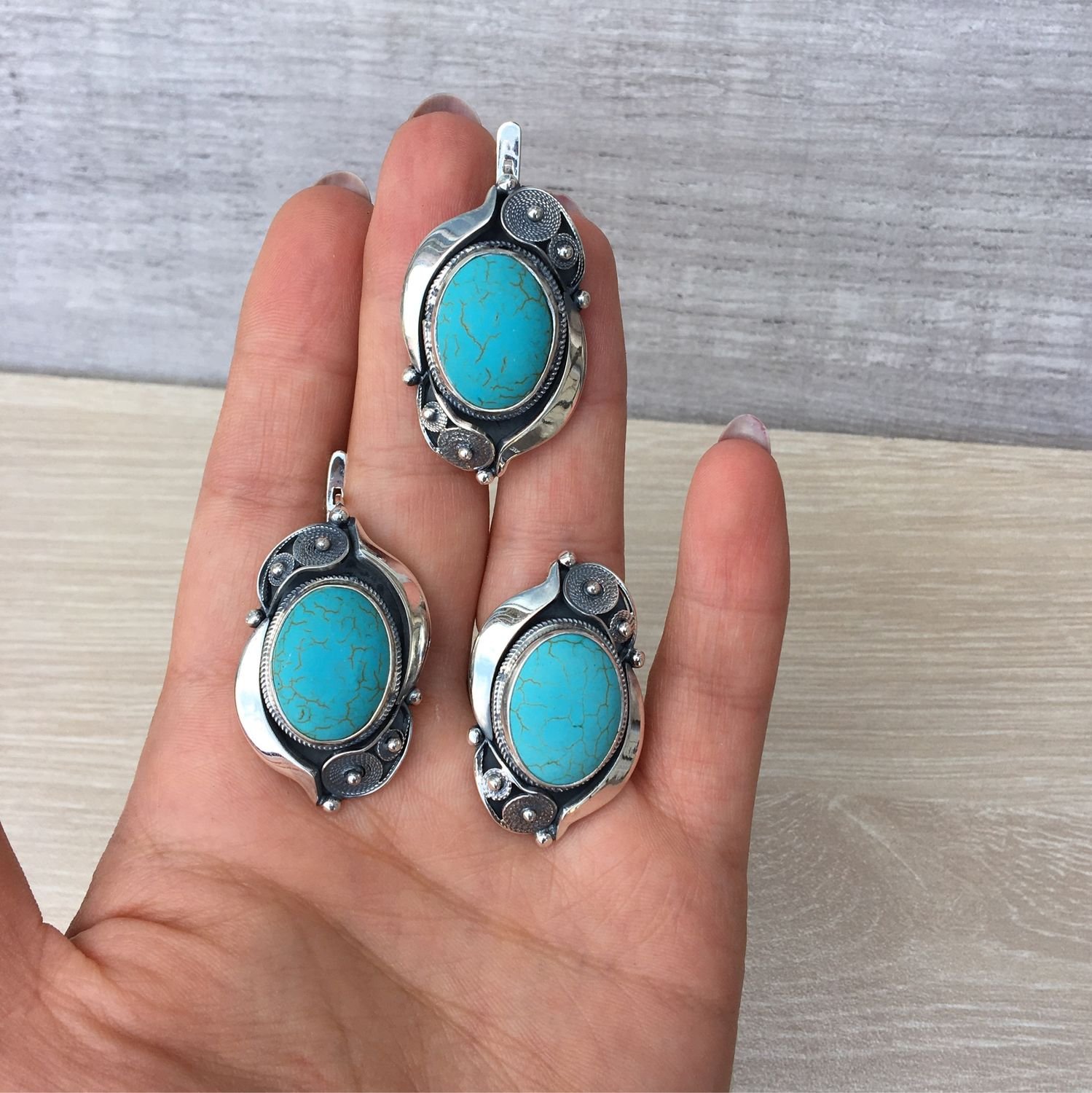 Комплекты из бирюзы в серебре