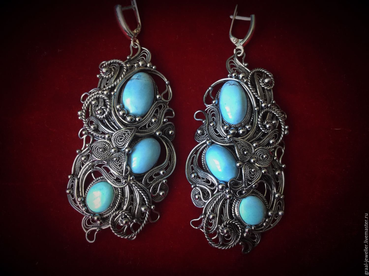 Филигрань серьги из серебра с бирюзой