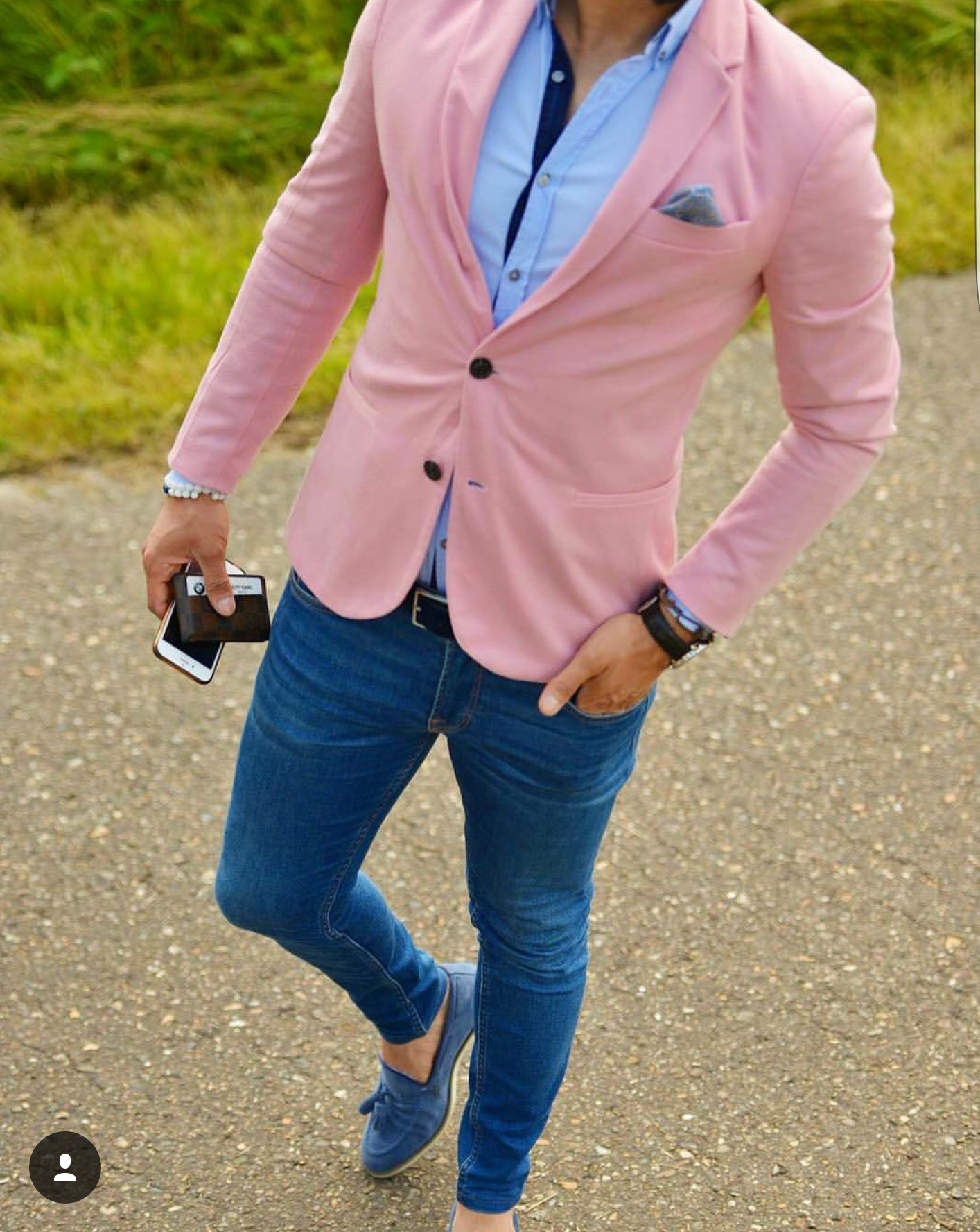 Синий пиджак и джинсы