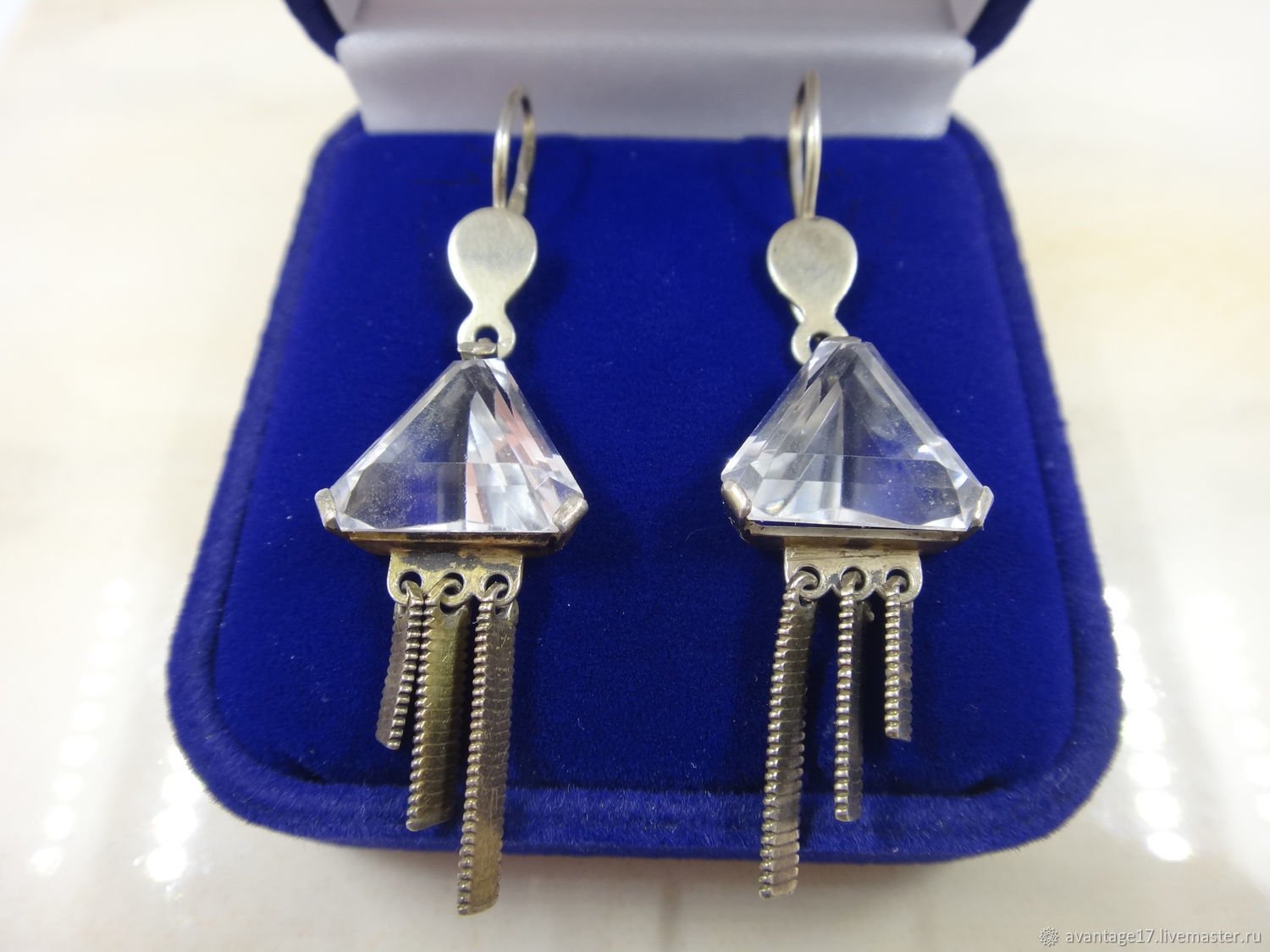 Серьги горный хрусталь русские Самоцветы