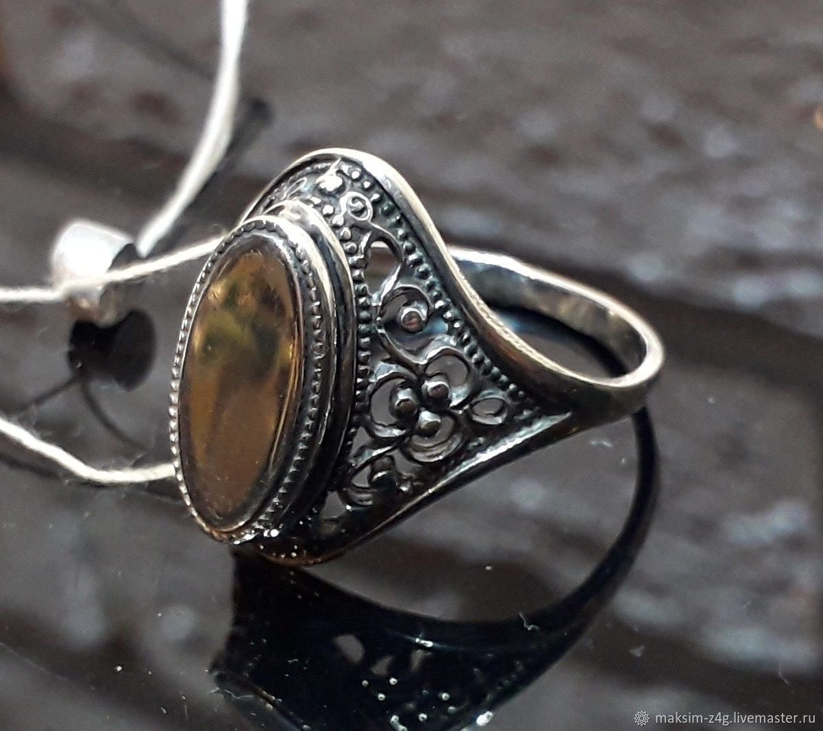Брошка с раухтопазом Винтаж филигрань коллекционная серебро 875