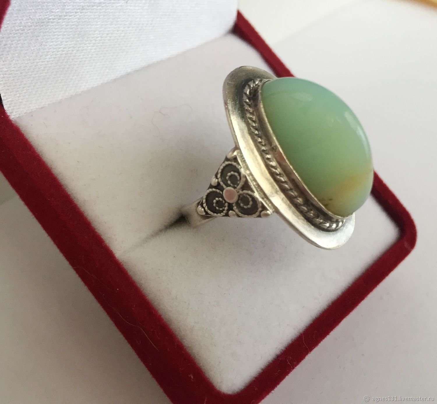 Кольцо с хризопразом серебро Винтаж