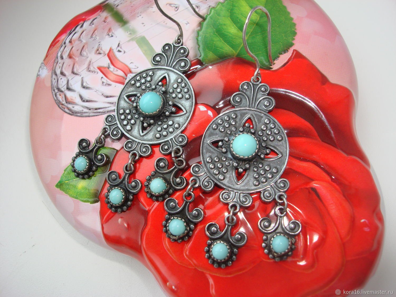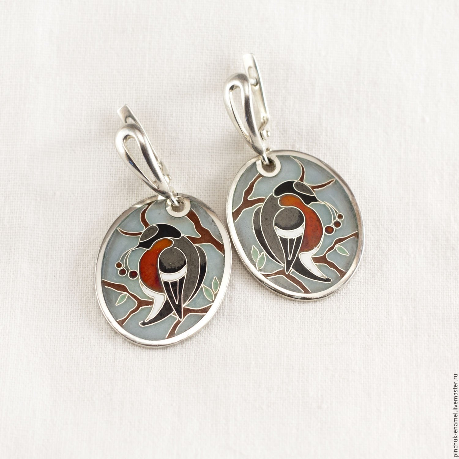 Серьги финифть серебро