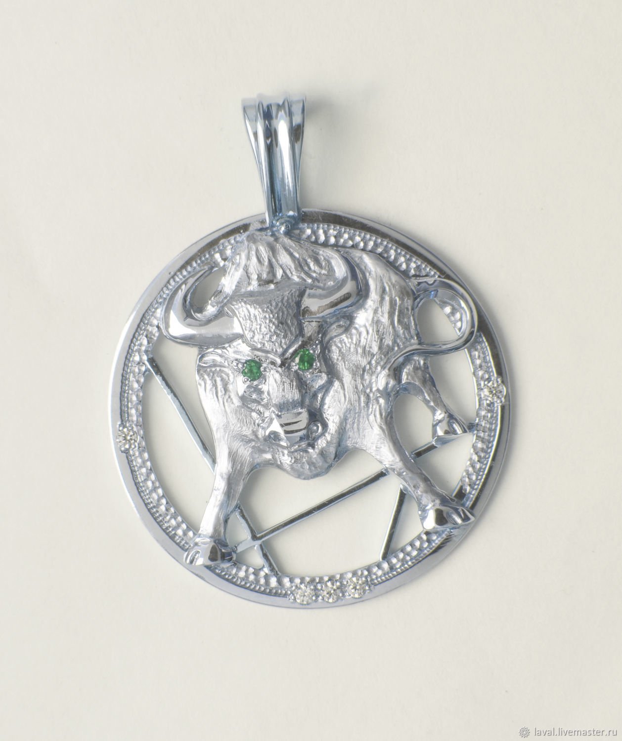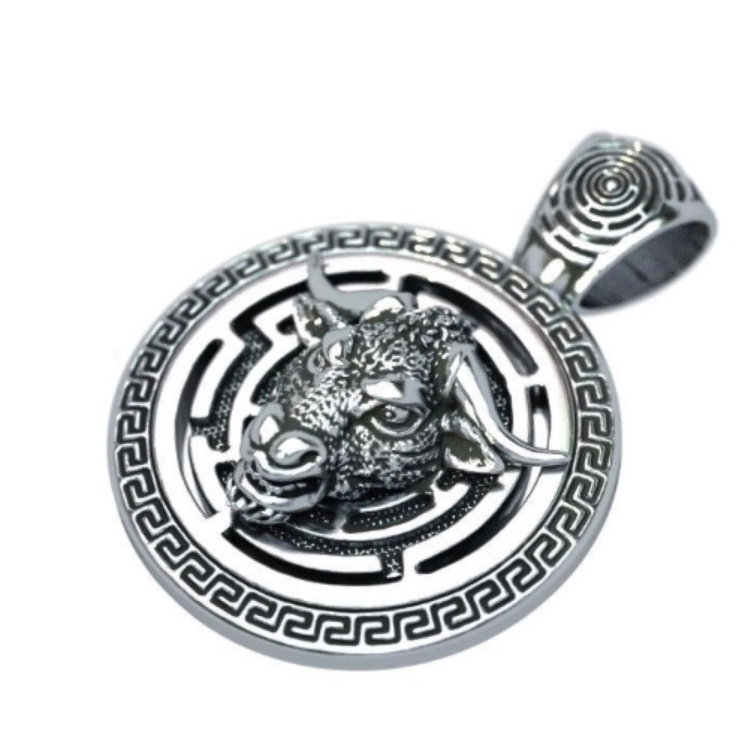 Серебряный медальон бык